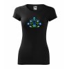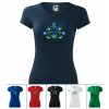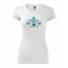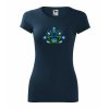Trendové dámske tričko s originálnou výšivkou inšpirovanou slovenským folklórom a ornamentmi v trojfarebnej kombinácii s dominantnou modrou farbou