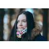 Trendová elastická tubulárna multifunkčná šatka na krk s potlačeným folklórnym vzorom v rôznych farebných prevedeniach šatky.