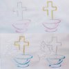 Vyšívaná krstová košieľka – na výber zo štyroch farebných kombinácií výšivky, vyšívané striebornou alebo zlatou niťou v kombinácii so svetlomodrou alebo svetloružovou farbou nite, Meno a dátumy sa vyšívajú buď svetloružovou alebo svetlomodrou farbou, podľa zvolenej farebnej kombinácii.