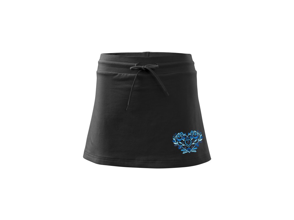 suknička so všitými kraťasmi doplnená o výšivku srdiečka, ktorá dodá vášmu outfitu eleganciu aj nádych folklórnej tradície.