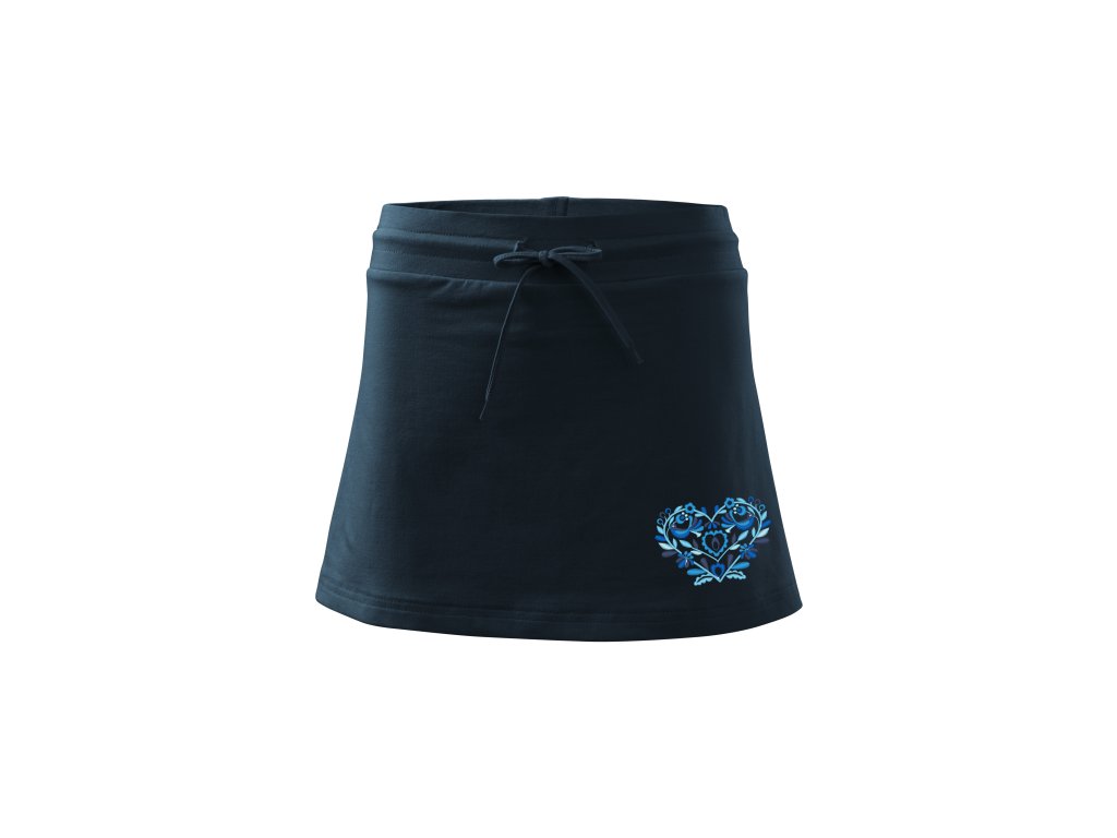 2v1 sukňa a všité kraťasy s výšivkou srdiečka IKA modrá - VÝPREDAJ