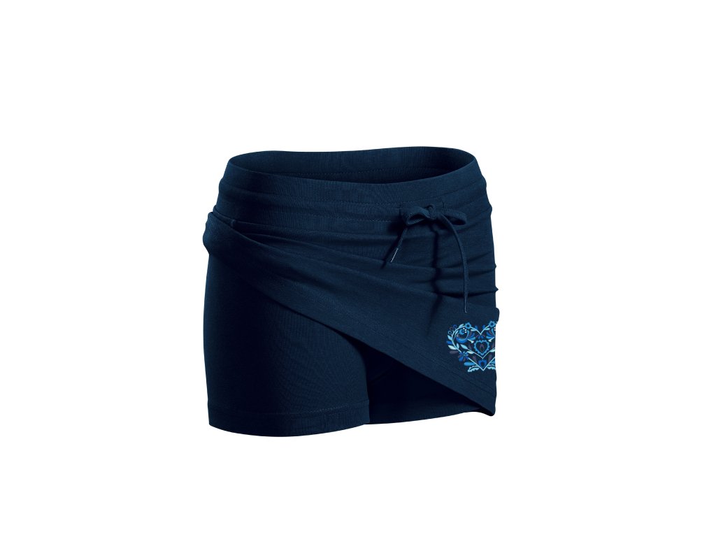 2v1 sukňa a všité kraťasy s výšivkou srdiečka IKA modrá VÝPREDAJ