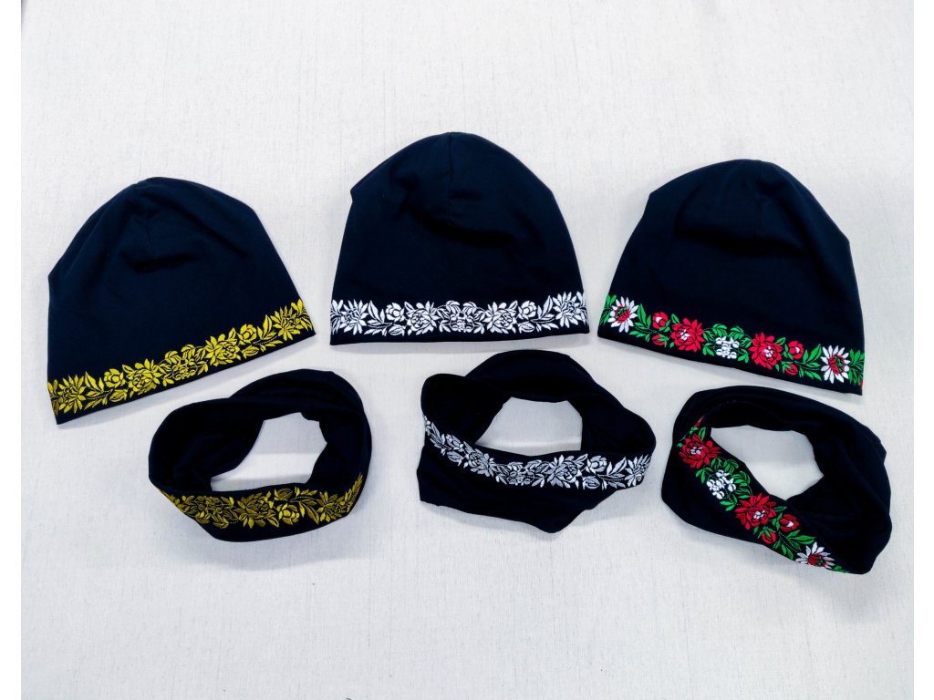 VYŠÍVANÉ Výber farieb čiapky. Tenšie dvojvrstvové alebo zateplené. Zvoľte si výhodný set s multifunkčnou šatkou/nákrčníkom