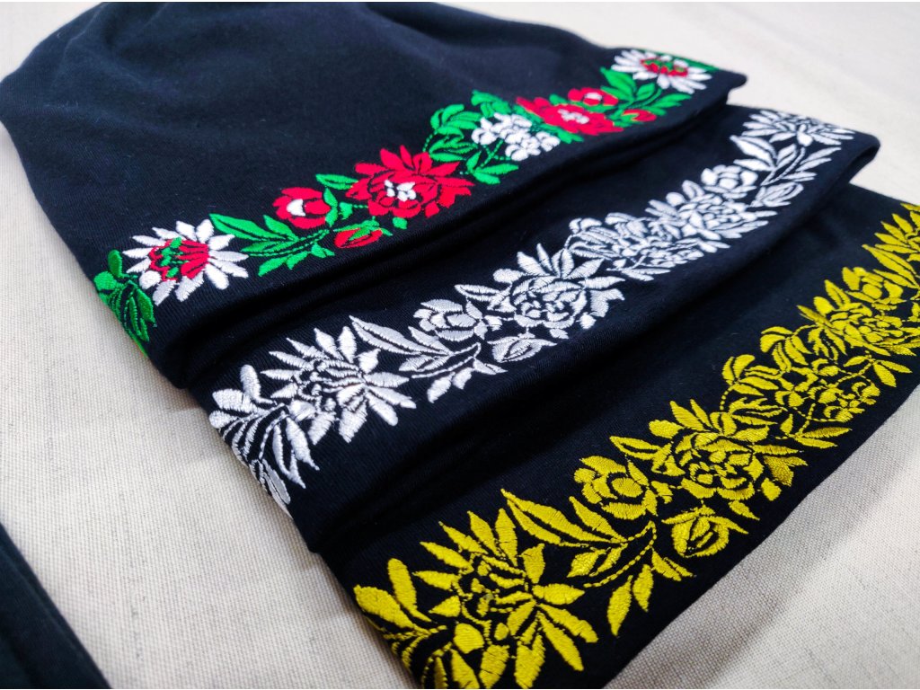 Čiapka s vyšívaným motívom pás - výber farieb výšivky a látky