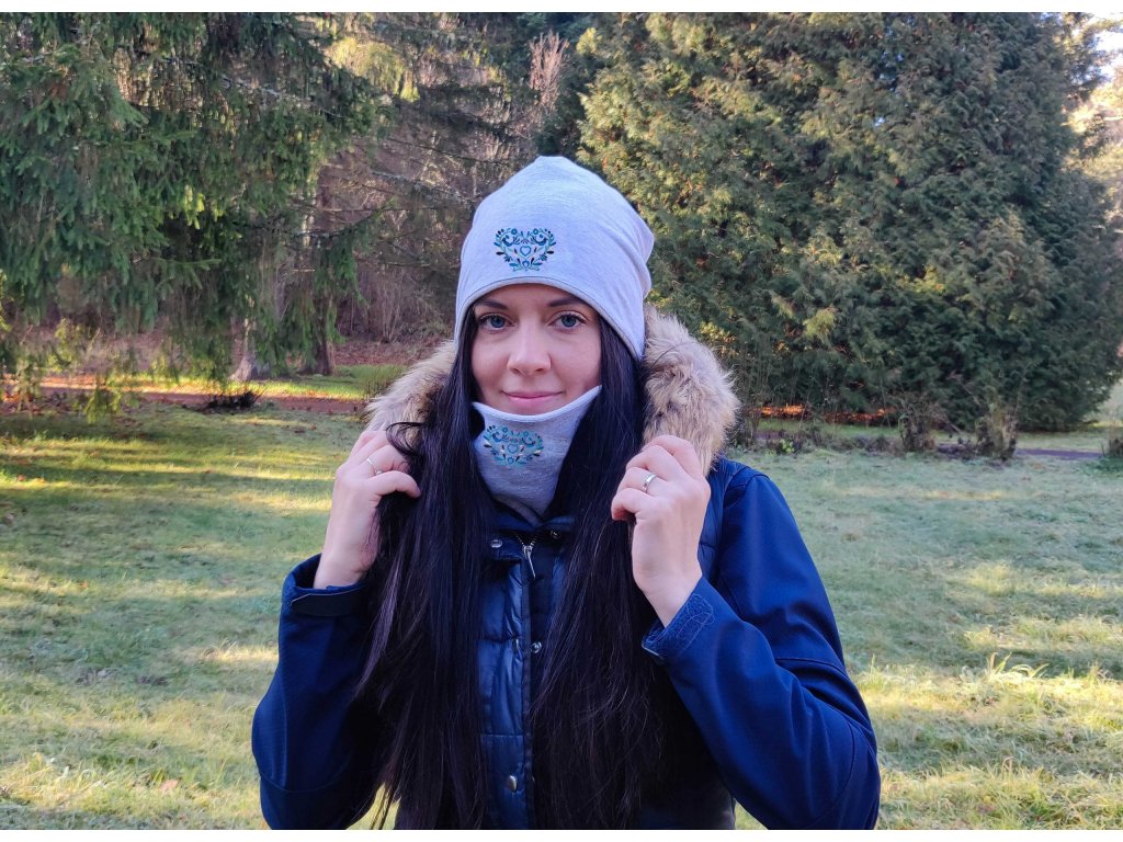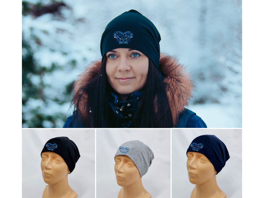 Unisex čiapka s vyšívaným motívom vzoru IKA modrá - na výber z viacerých farieb látky, tenšie alebo zateplené čiapky, možnosť zvoliť si nákrčník/multifunkčnú šatku k čiapke za zvýhodnenú cenu!