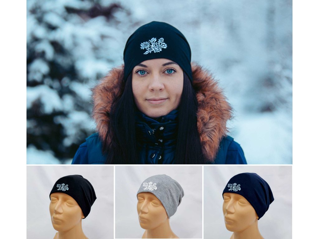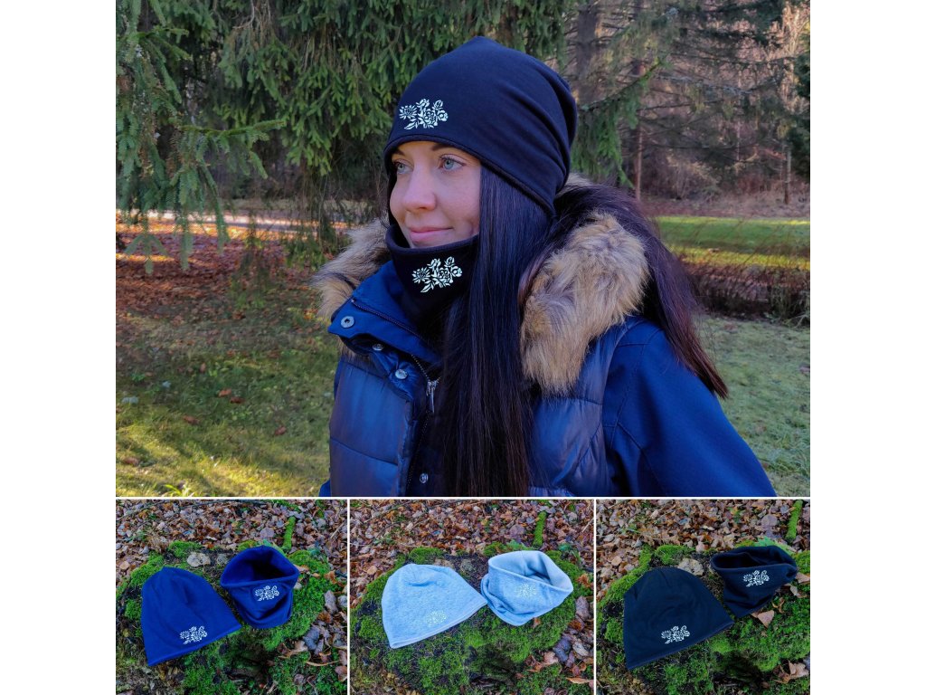 VYŠÍVANÉ Výber farieb čiapky. Tenšie dvojvrstvové alebo zateplené. Zvoľte si výhodný set s multifunkčnou šatkou/nákrčníkom