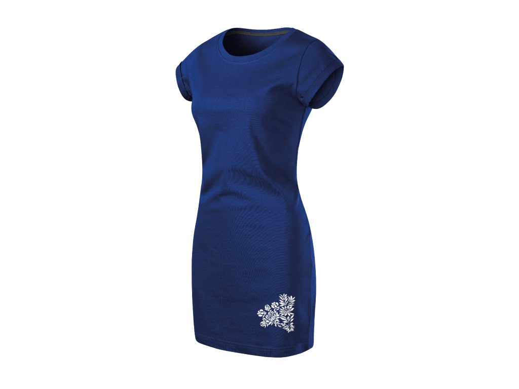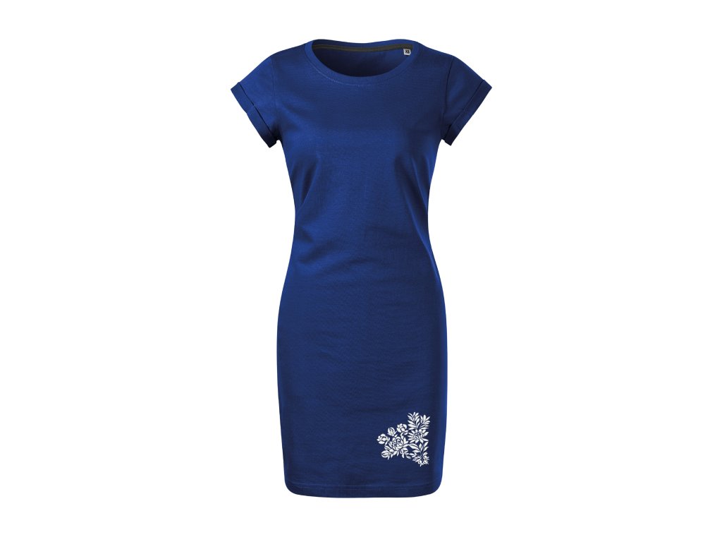 Dámske šaty modré s výšivkou Kristián biely výpredaj