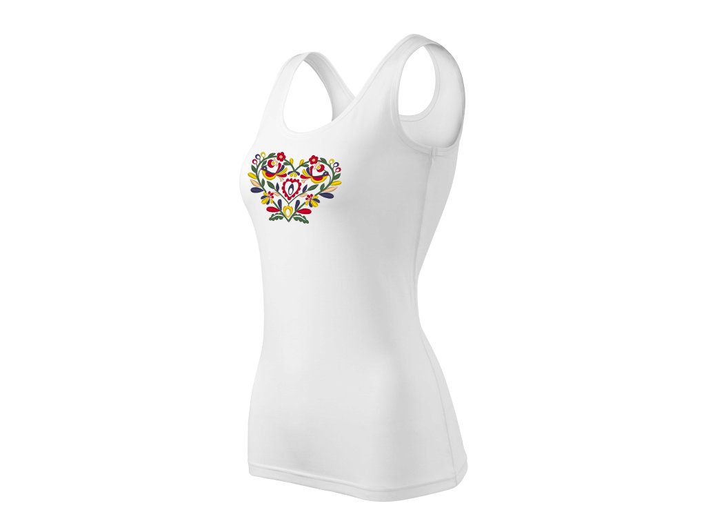 VYŠÍVANÉ Trendové dámske tričko s originálnou výšivkou inšpirovanou slovenským folklórom a ornamentmi v bielej farbe