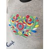 Dámske tričko s vyšívaným motívom inšpirovaným slovenským folklórom s možnosťou doplniť vlastný nápis v strede srdiečka ZADARMO