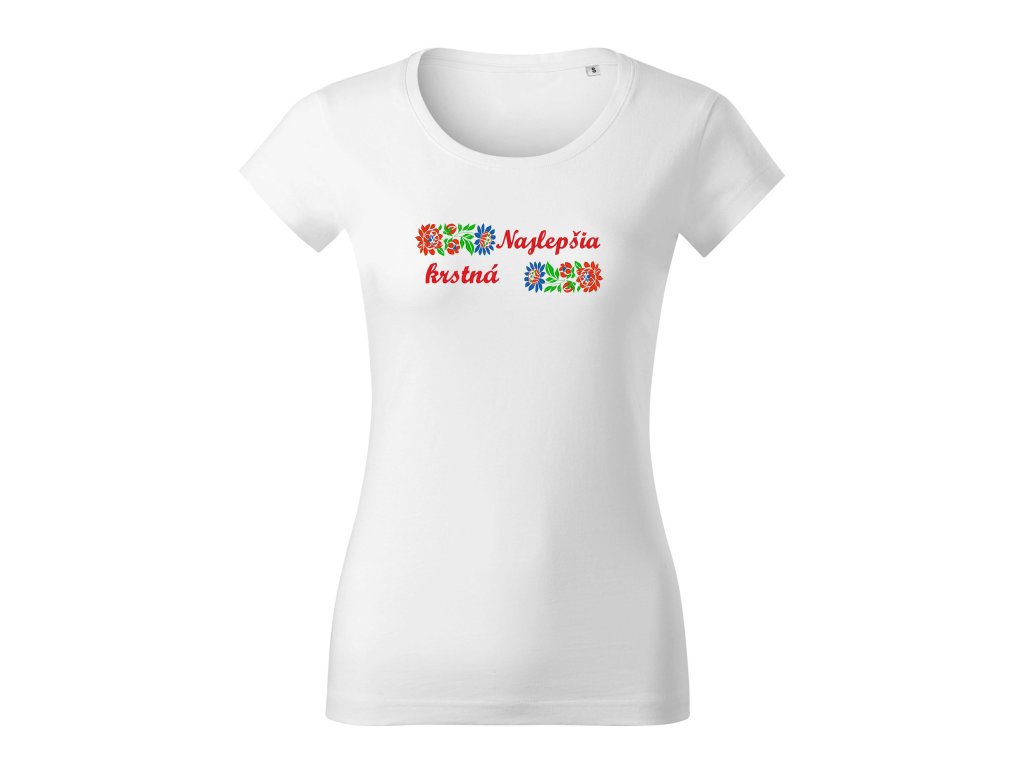 Folklórne tričko dámske s výšivkou Kristián s vlastným nápisom