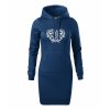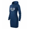 Dámske vyšívané šaty s kapucňou polnočná modrá na štýl predĺženej mikiny s výšivkou vzor IKA v jednofarebnom bielom prevedení.