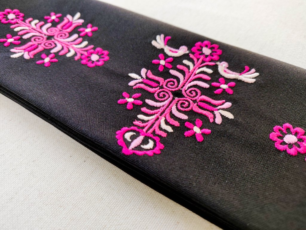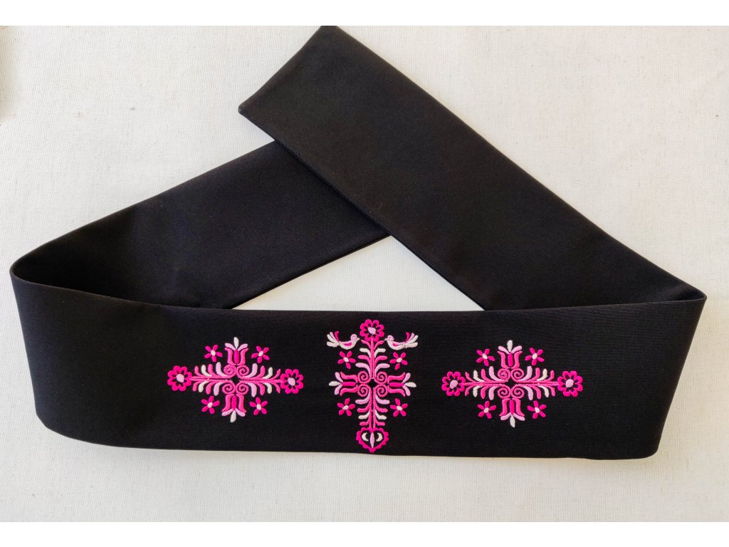 Dámsky opasok s výšivkou vzor Adam v ružových odtieňoch, výšivka je inšpirovaná slovenským folklórom.