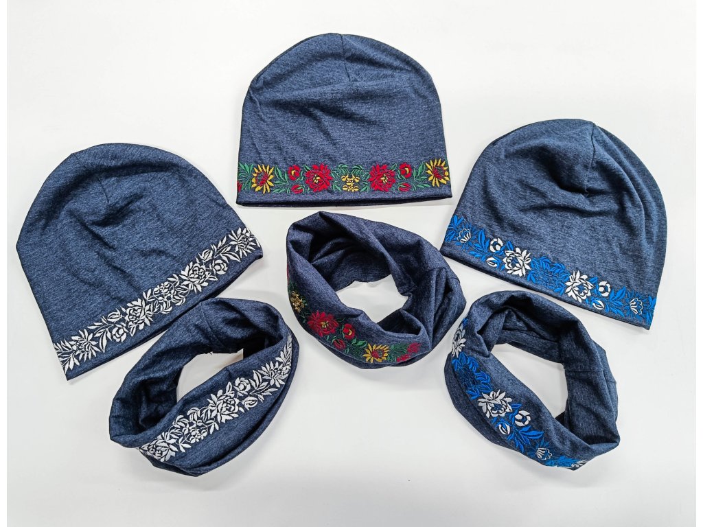 VYŠÍVANÉ Výber farieb čiapky. Tenšie dvojvrstvové alebo zateplené. Zvoľte si výhodný set s multifunkčnou šatkou/nákrčníkom