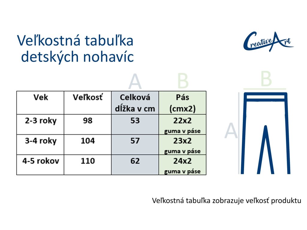 Dostupné veľkosti: 86, 92, 98 (2-3 roky), 104 (3-4 roky), 110 (4-5 rokov), 116, 122 – veľkostnú tabuľku nájdete v galérii produktu. V prípade potreby inej veľkosti gumy, než je zadaná vo veľkostnej tabuľke, nám veľkosť gumy napíšte do poznámky k produktu.