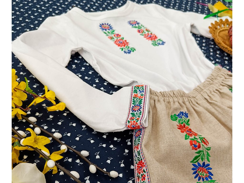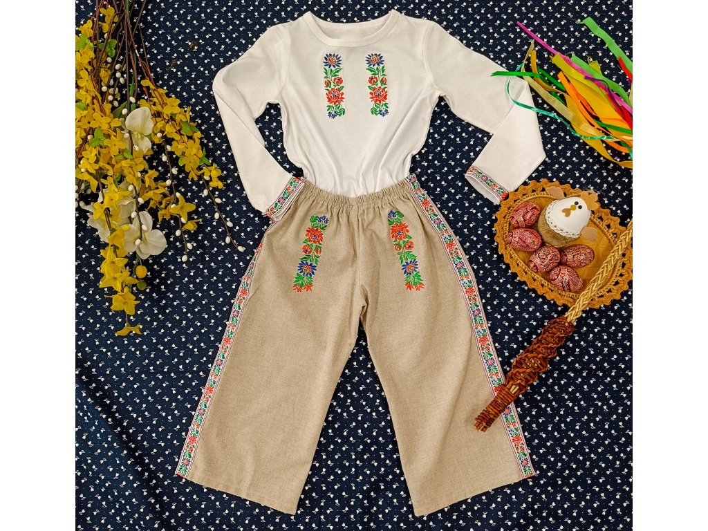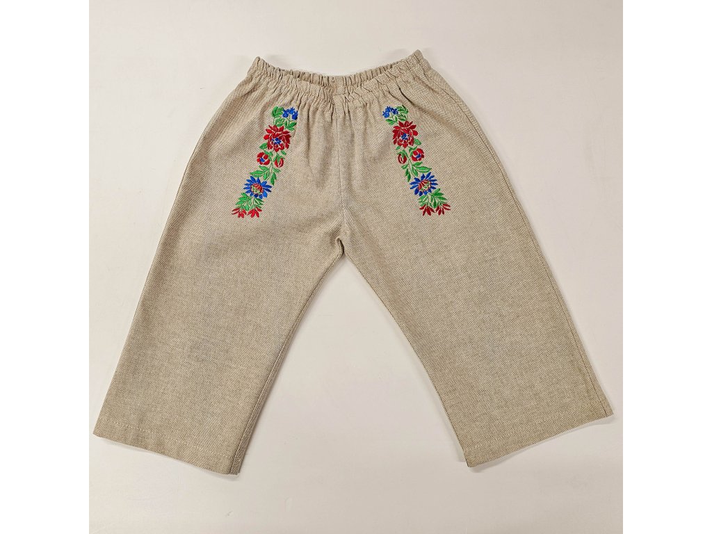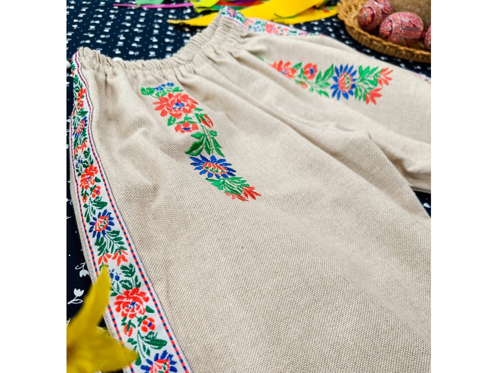 Detské vyšívané nohavice z režného plátna