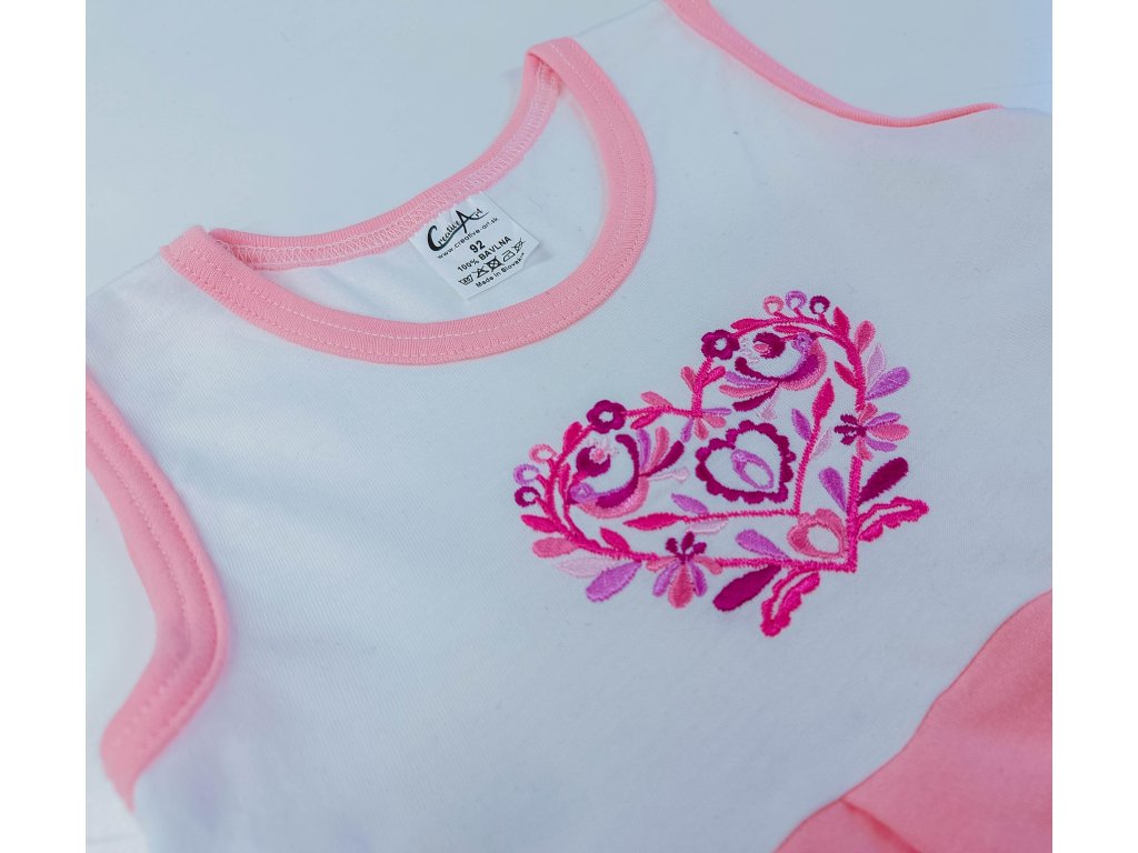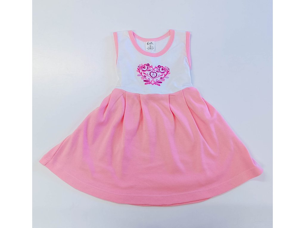 Detské šaty s výšivkou srdiečka a kruhovou ružovou sukničkou