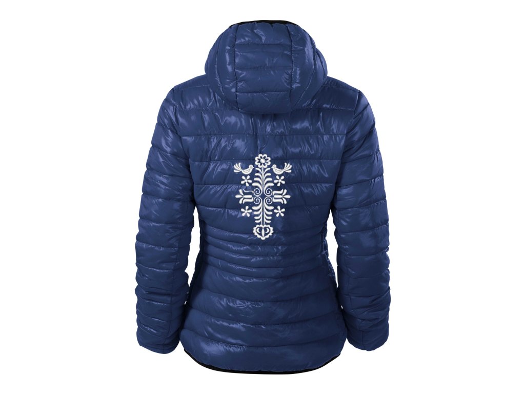 Dámska ľahká bunda doplnená originálnou výšivkou ADAM v bielom prevedení na vrchnej časti chrbta inšpirovanou slovenským folklórom.