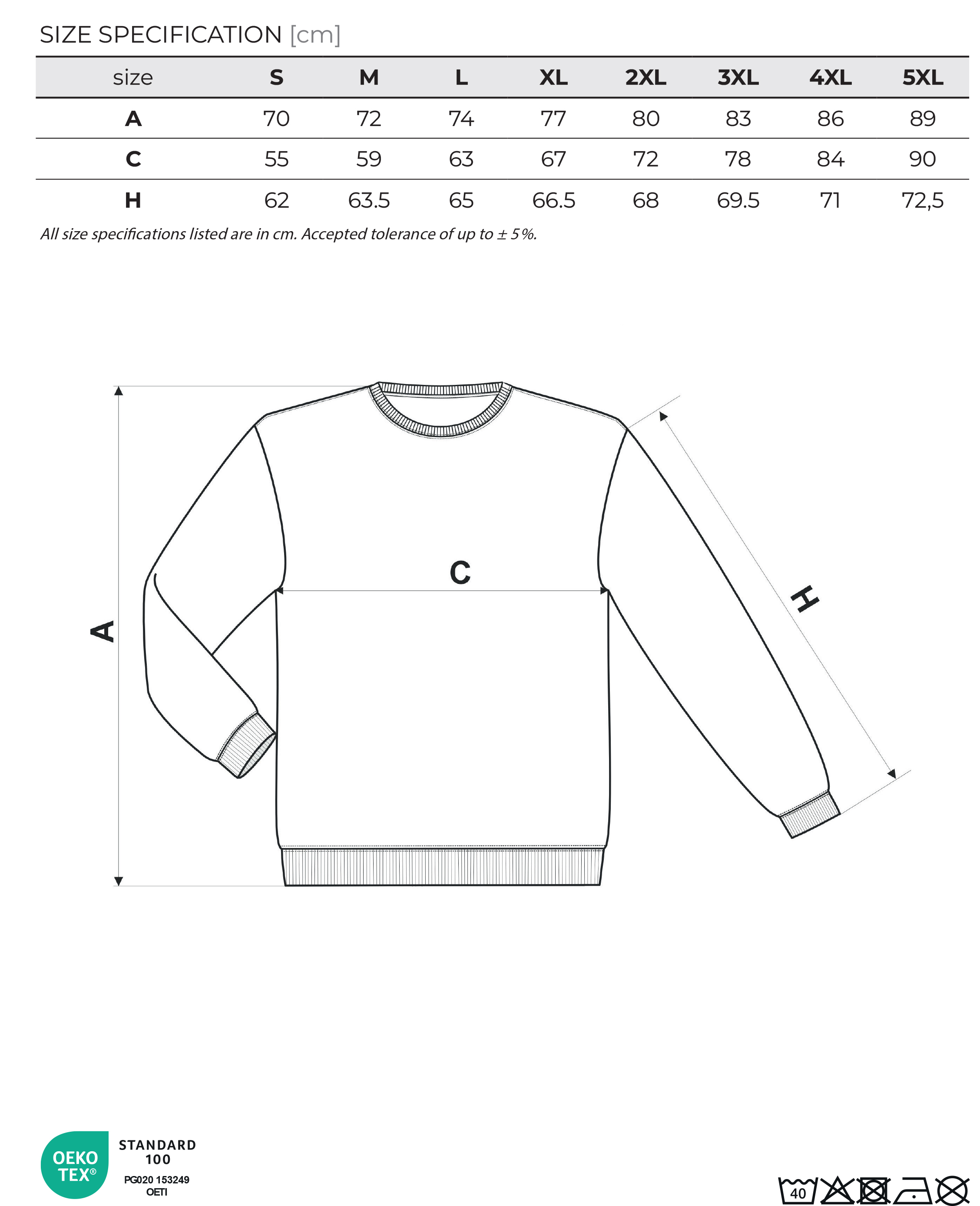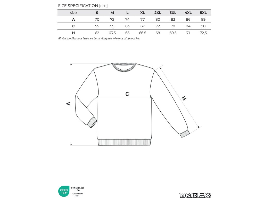 Zloženie materiálu: 60 % bavlna, 40 % polyester, výplnková pletenina, vnútorná strana počesaná, rovný strih s bočnými švami