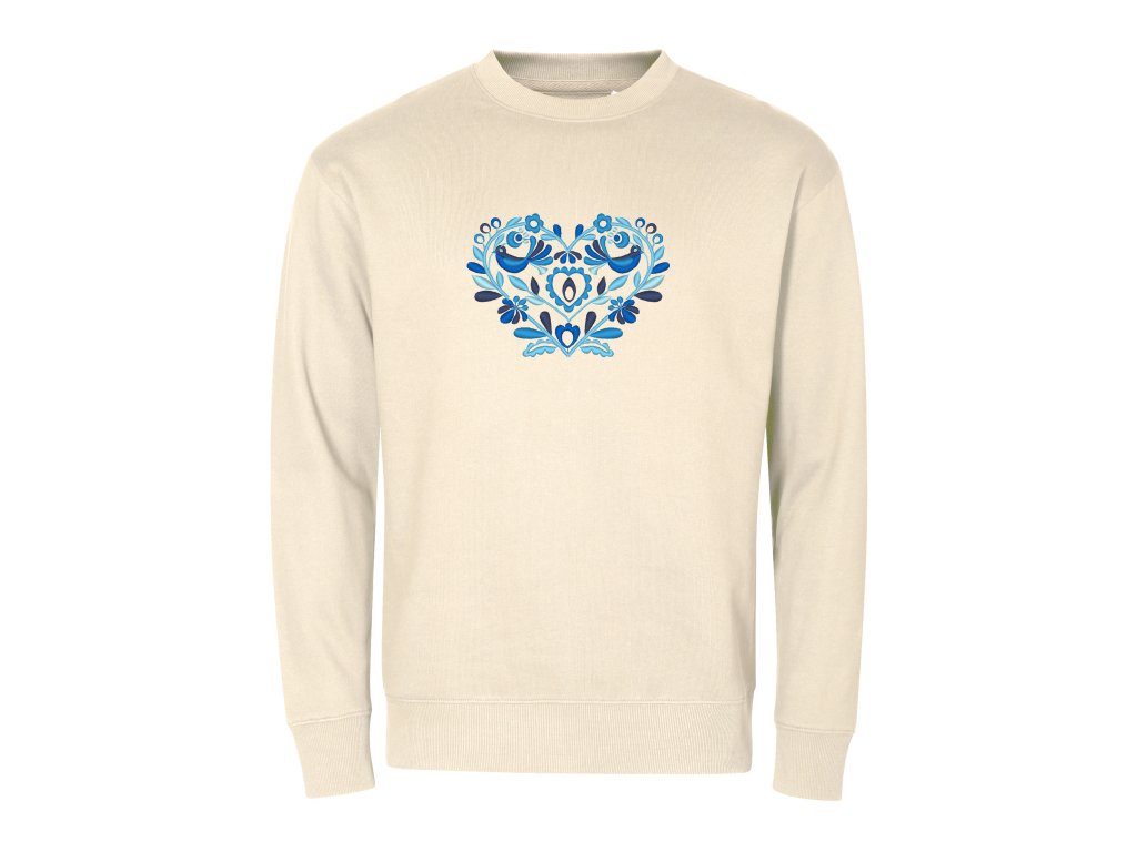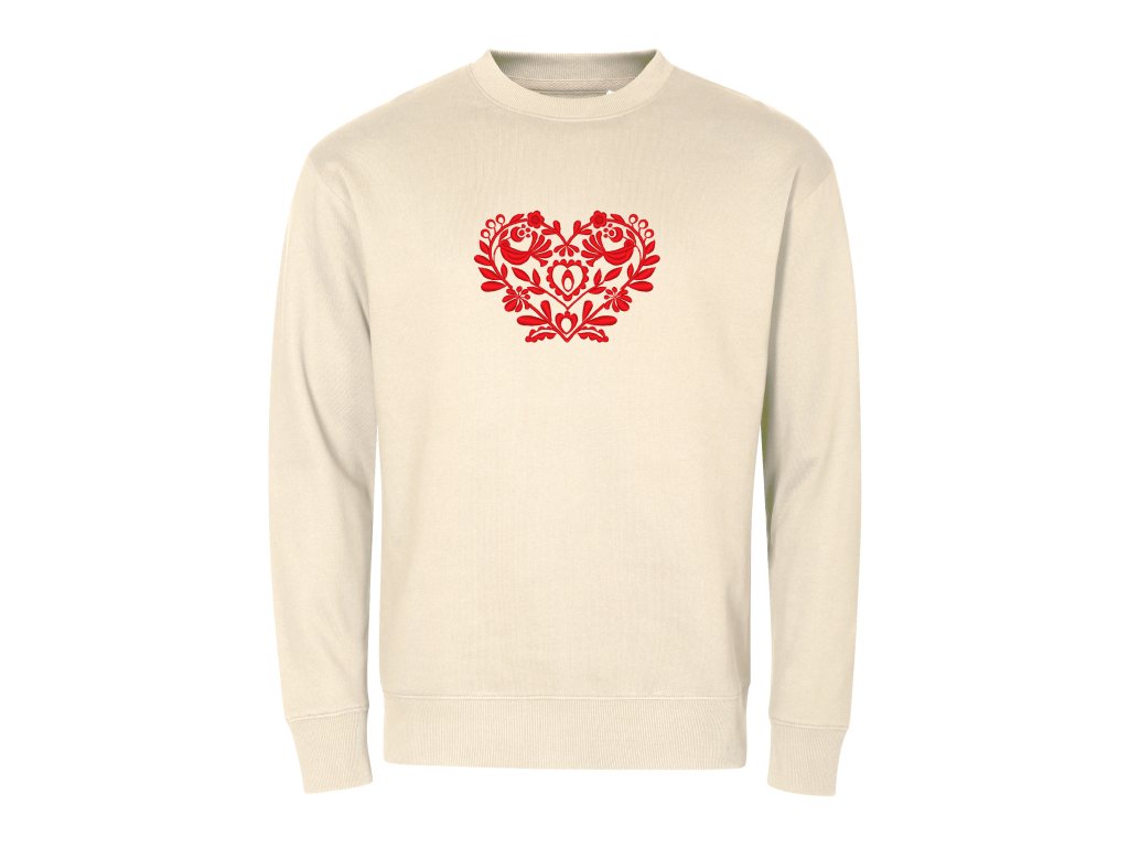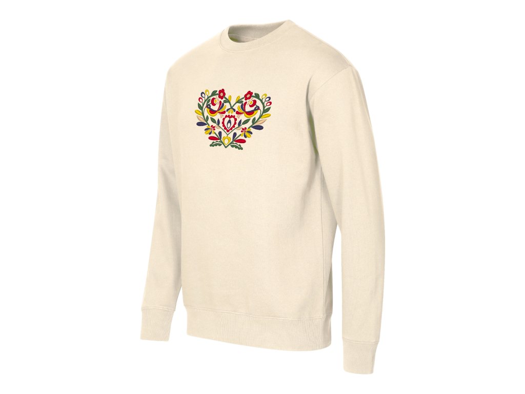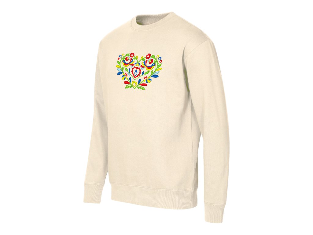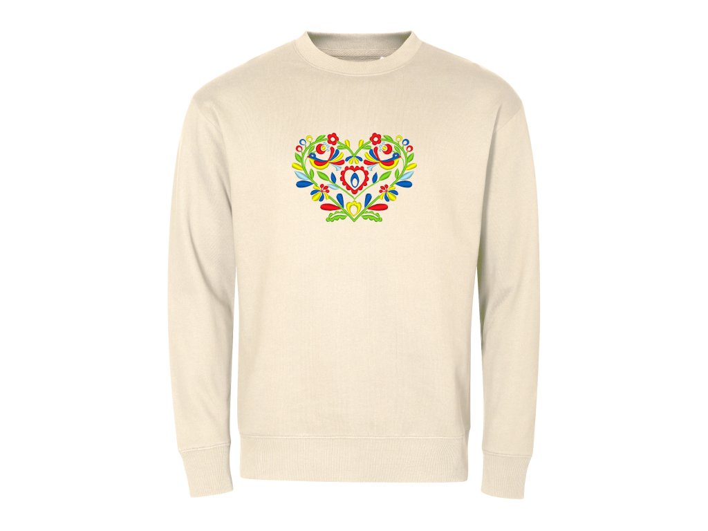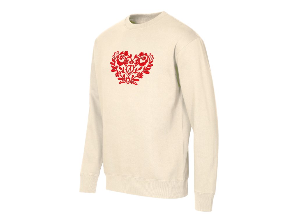 Unisex mikina v ležérnom voľnom strihu doplnená o elegantnú výšivku v tvare srdiečka v rôznych farebných prevedeniach.