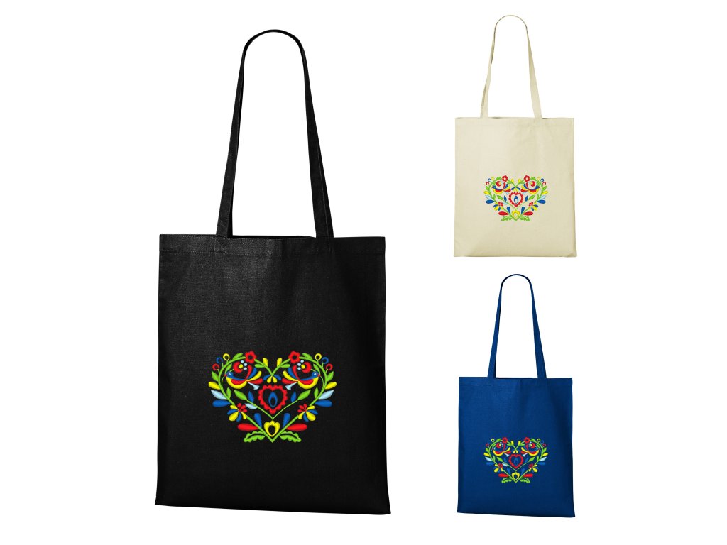 Praktická bavlnená taška vyššej gramáže doplnená o precíznu výšivku srdiečka vo farebnom prevedení.