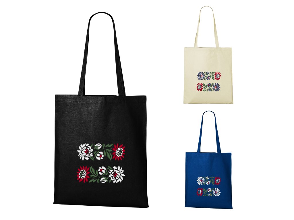 Praktická bavlnená taška vyššej gramáže doplnená o precíznu výšivku inšpirovanú slovenským folklórom