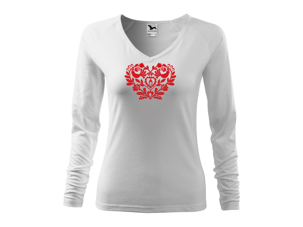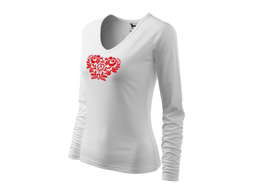 Folklórne tričko dámske biele s výšivkou IKA červená dlhý rukáv VÝPREDAJ