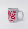 Folklórny keramický hrnček s motívom inšpirovaným slovenským folklórom s nápisom z našej vlastnej tvorby.