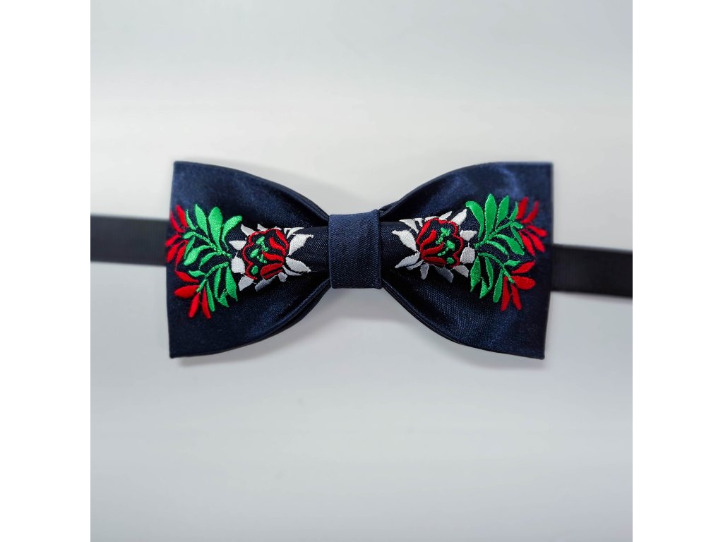 !LIMITOVANÁ EDÍCIA! Tradičné motívy v modernom šate. Elegantná kombinácia tmavomodrej kravaty a farebnej výšivky.