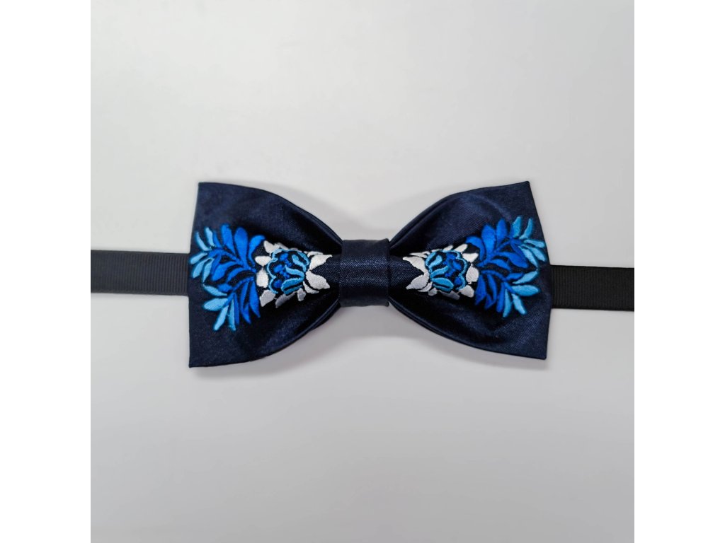 Folklórny vyšívaný motýlik Kristián modré odtiene- tmavomodrý satén