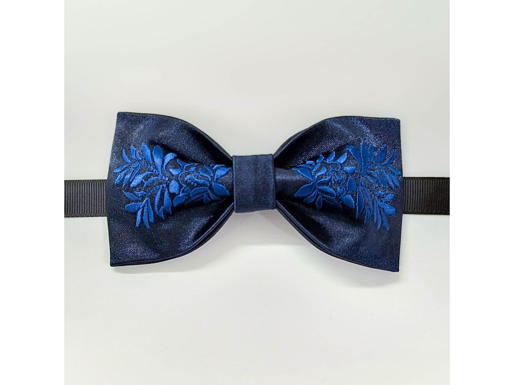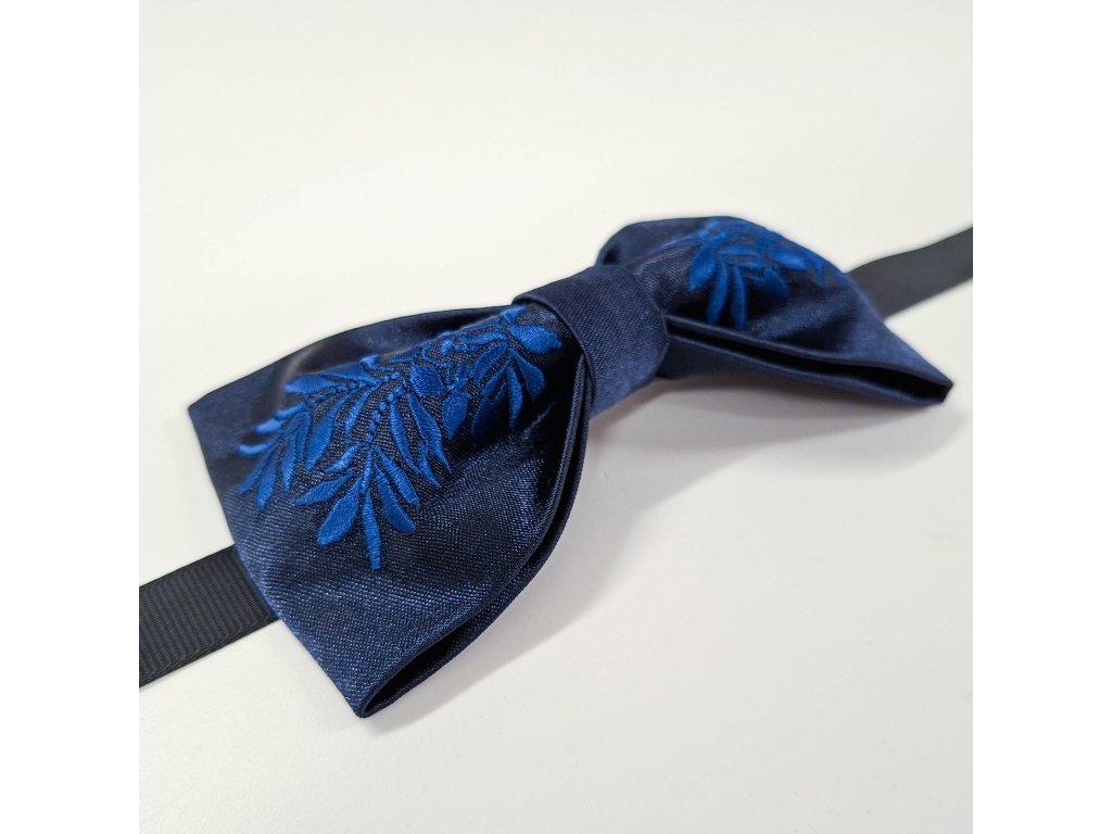 Folklórny vyšívaný motýlik Kristián tmavomodrý - tmavomodrý satén