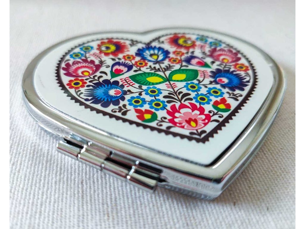 Kozmetické zrkadielko s potlačou vzoru farebné srdiečko.