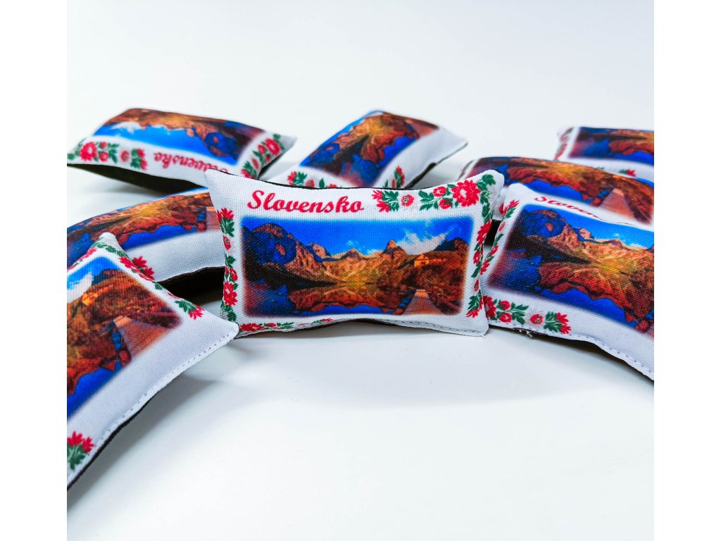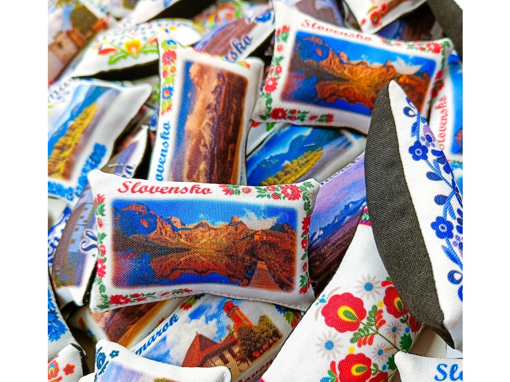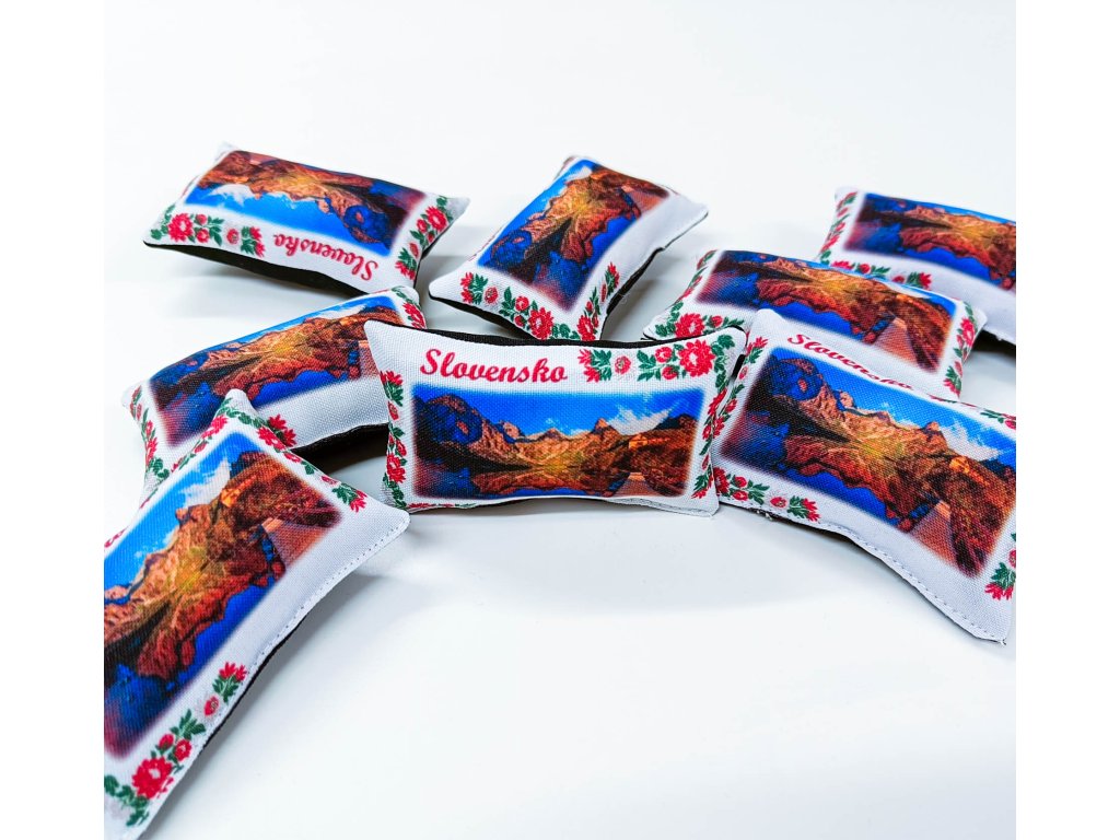 Magnetka je malý vankúšik v rozmere cca 10x6cm, vyplnená vankúšovou výplňou. Motív je potláčaný priamo na látku vankúšika.