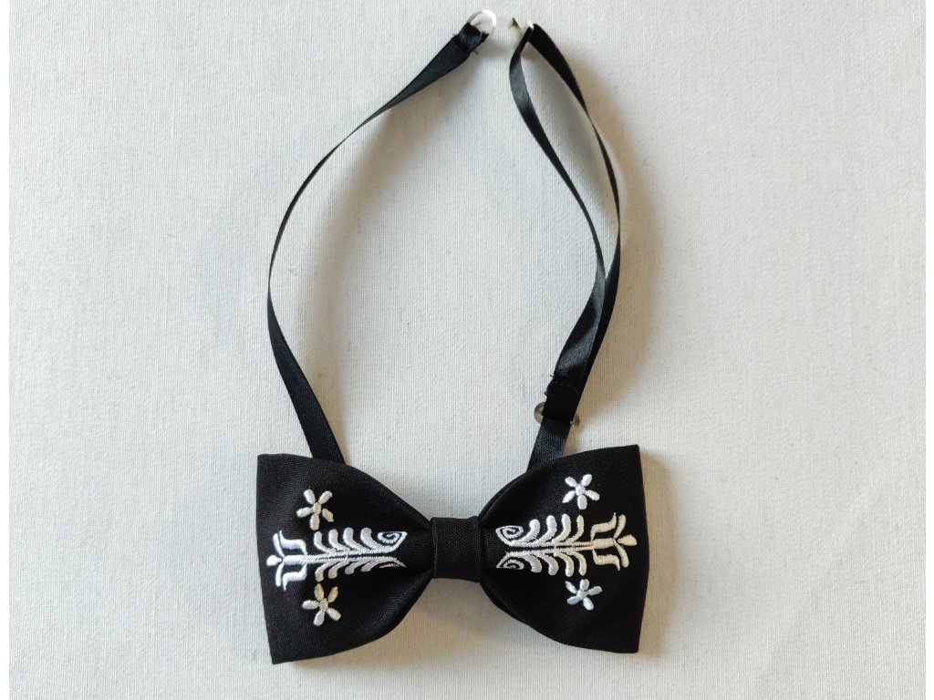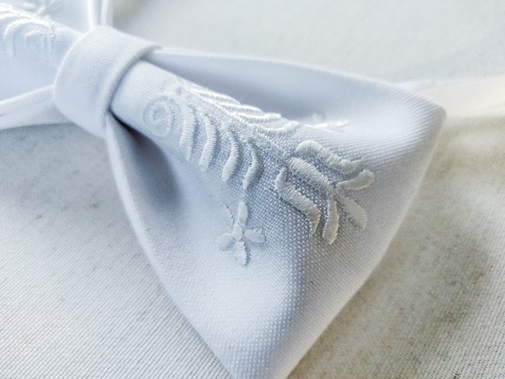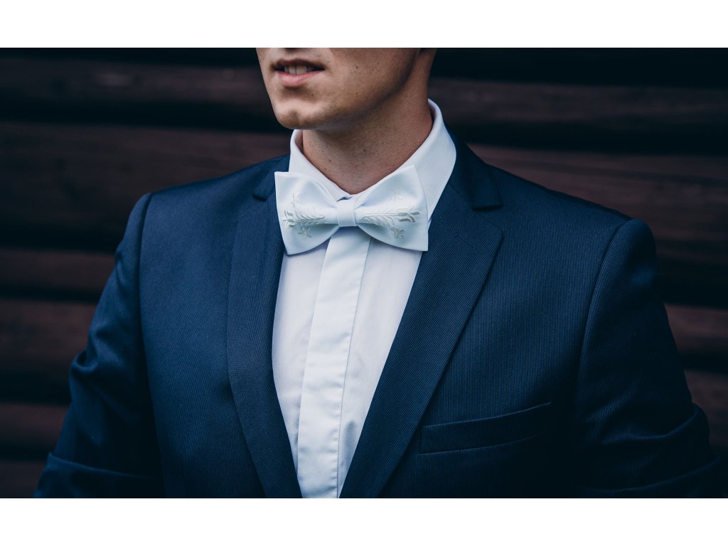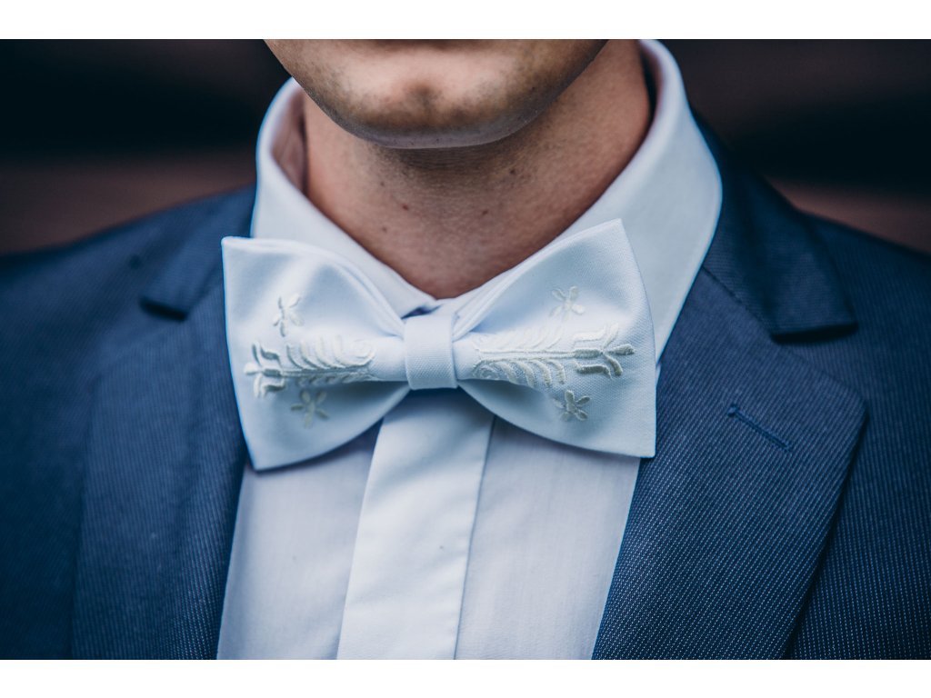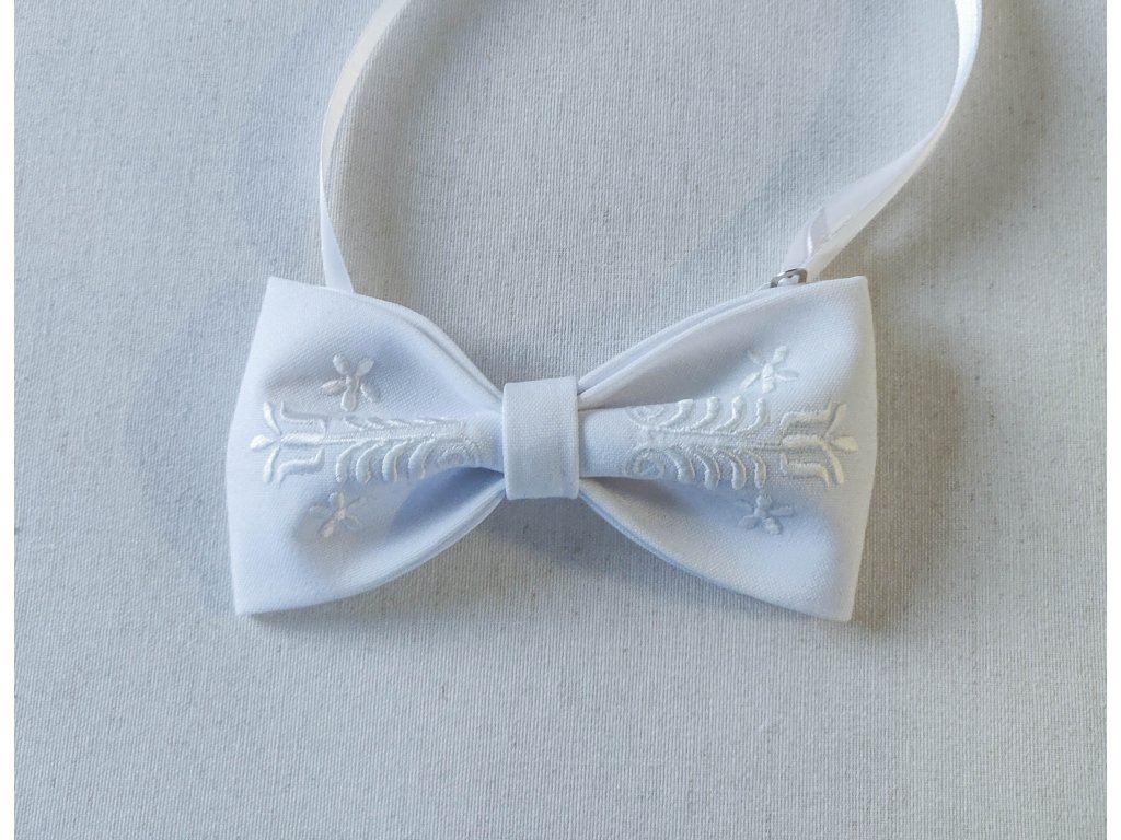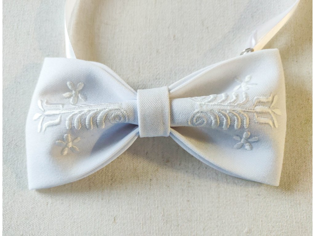 Motýlik s výšivkou Adam biela výšivka - výber farby látky
