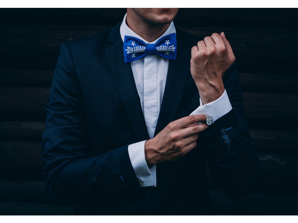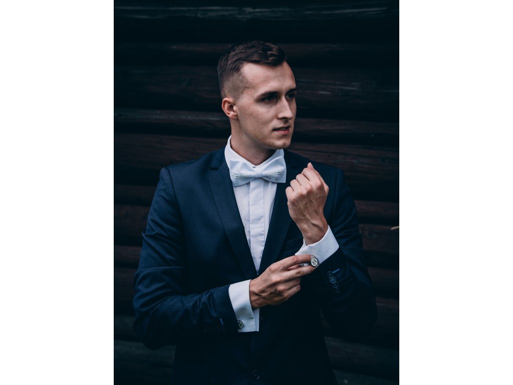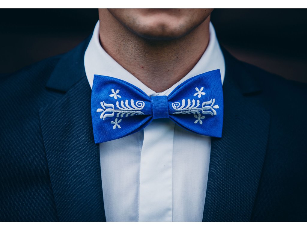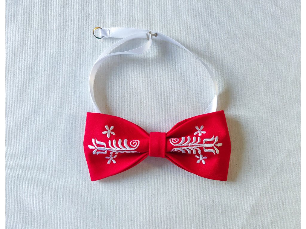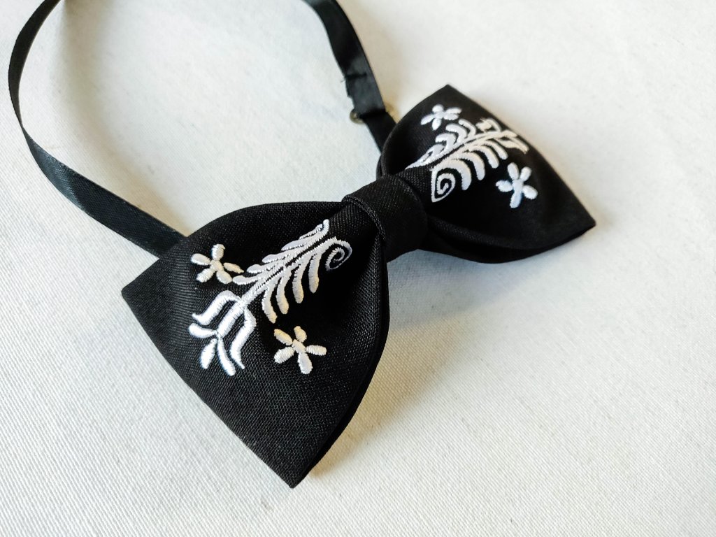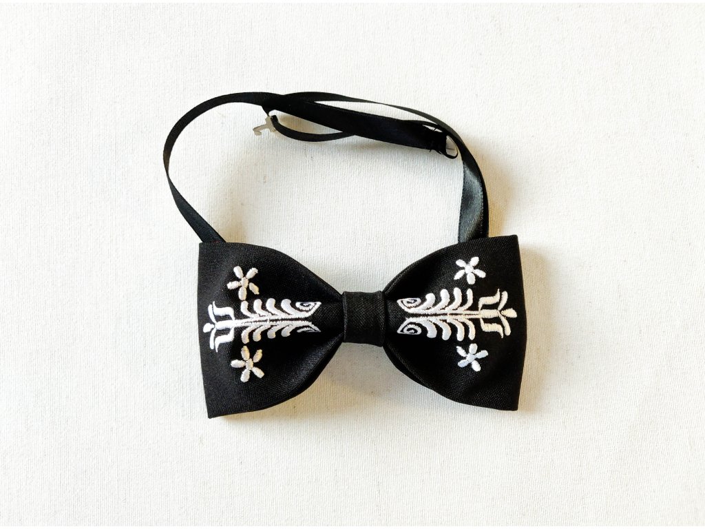 Motýlik s výšivkou Adam biela výšivka - výber farby látky