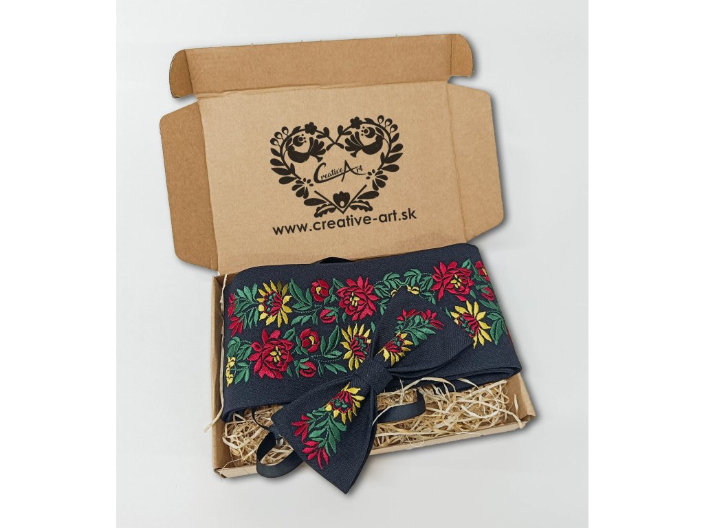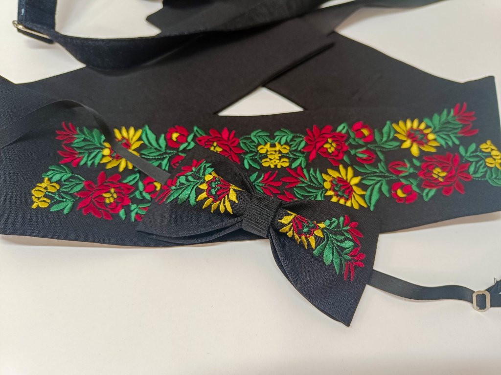 VYŠÍVANÉSada vyšívaný dámsky opasok a pánsky motýlik inšpirovanou slovenským folklórom