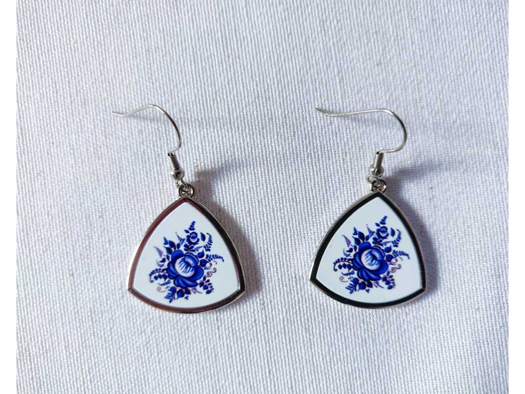 Náušnice triangel so vzorom kvietku v modrých odtieňoch