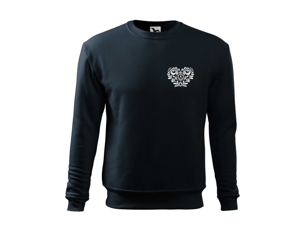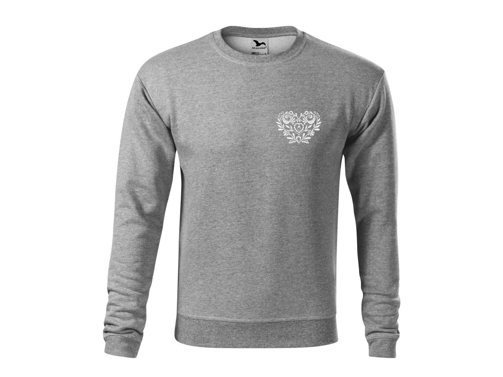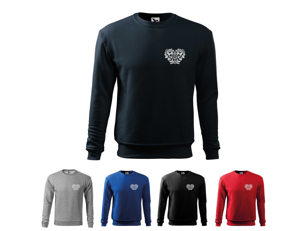 Trendová pánska ľahká mikina bez kapucne doplnená o výšivku srdiečka v bielej farbe na ľavej strane hrude.