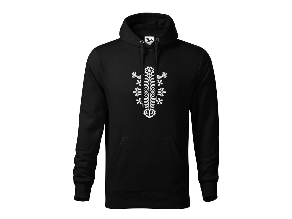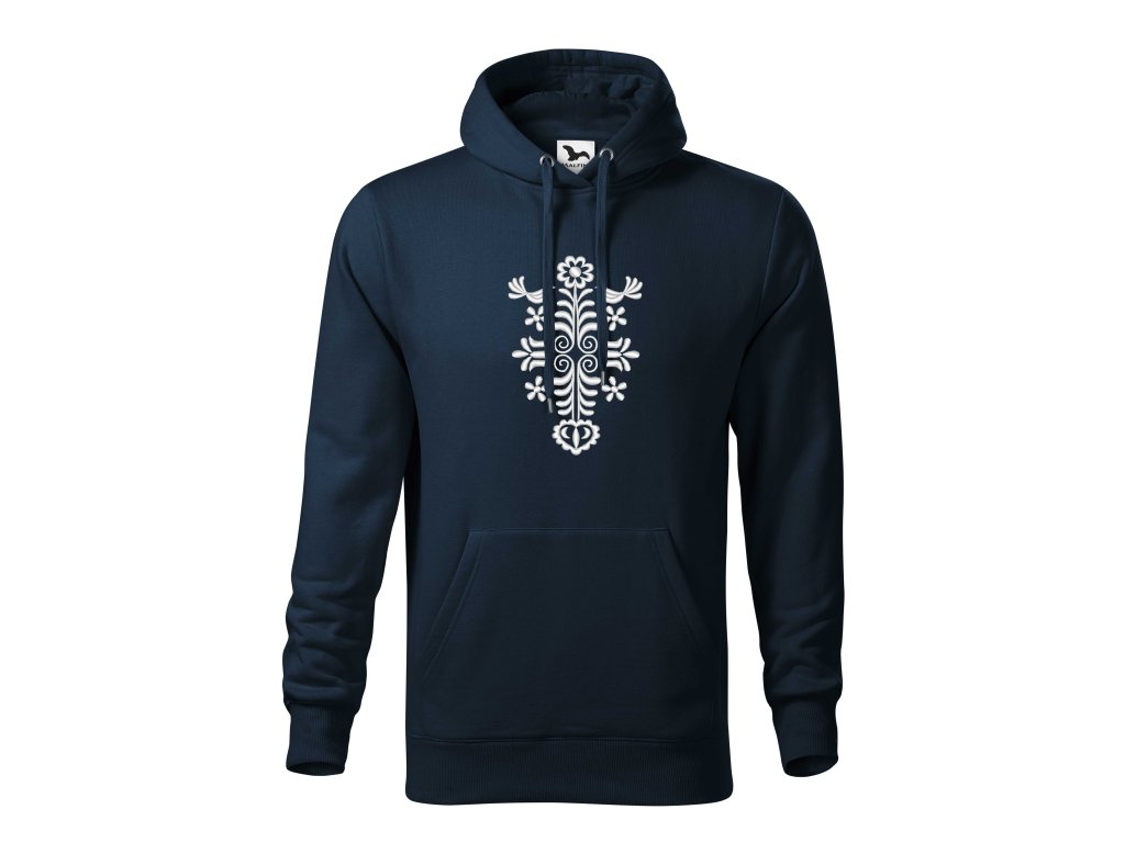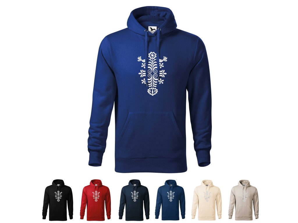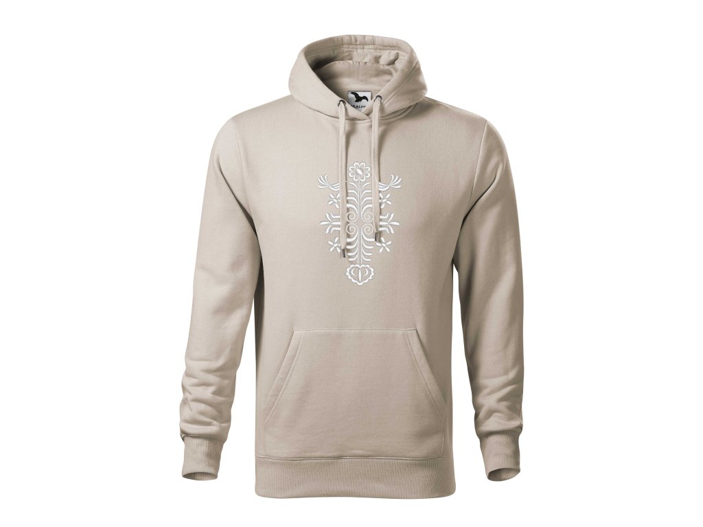 Folklórna mikina pánska s výšivkou vzor ADAM biely s kapucňou