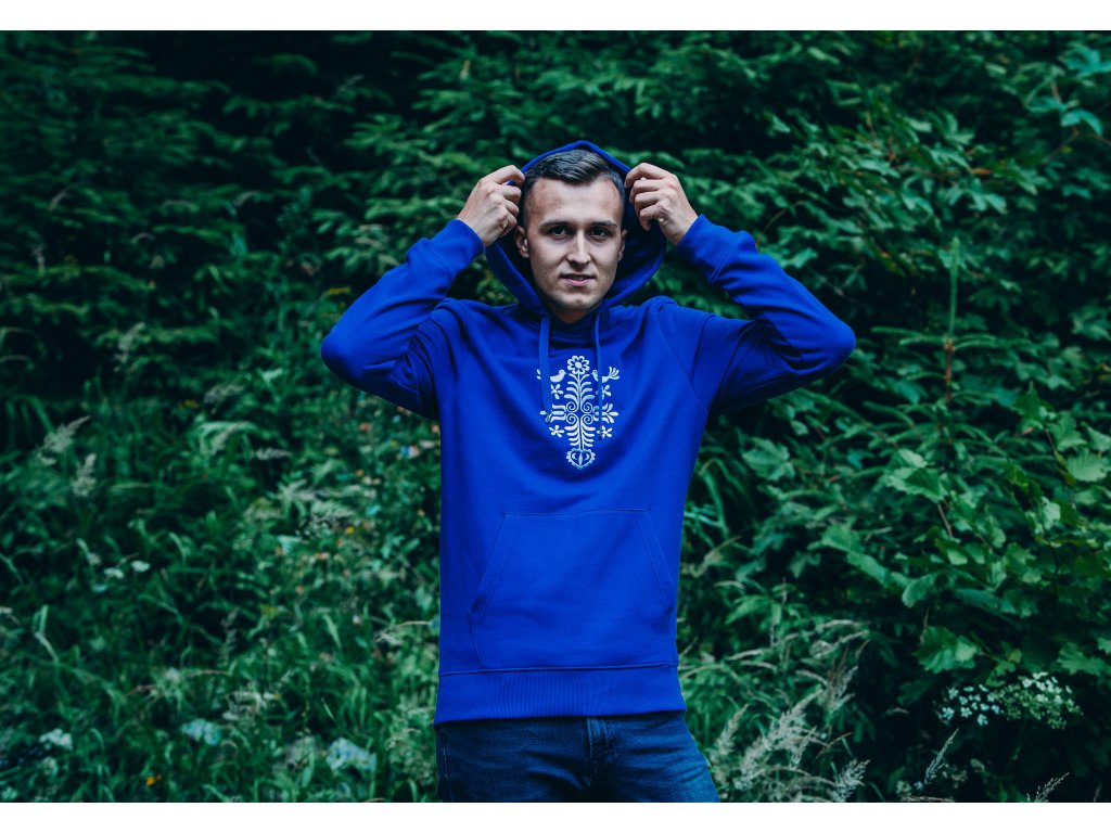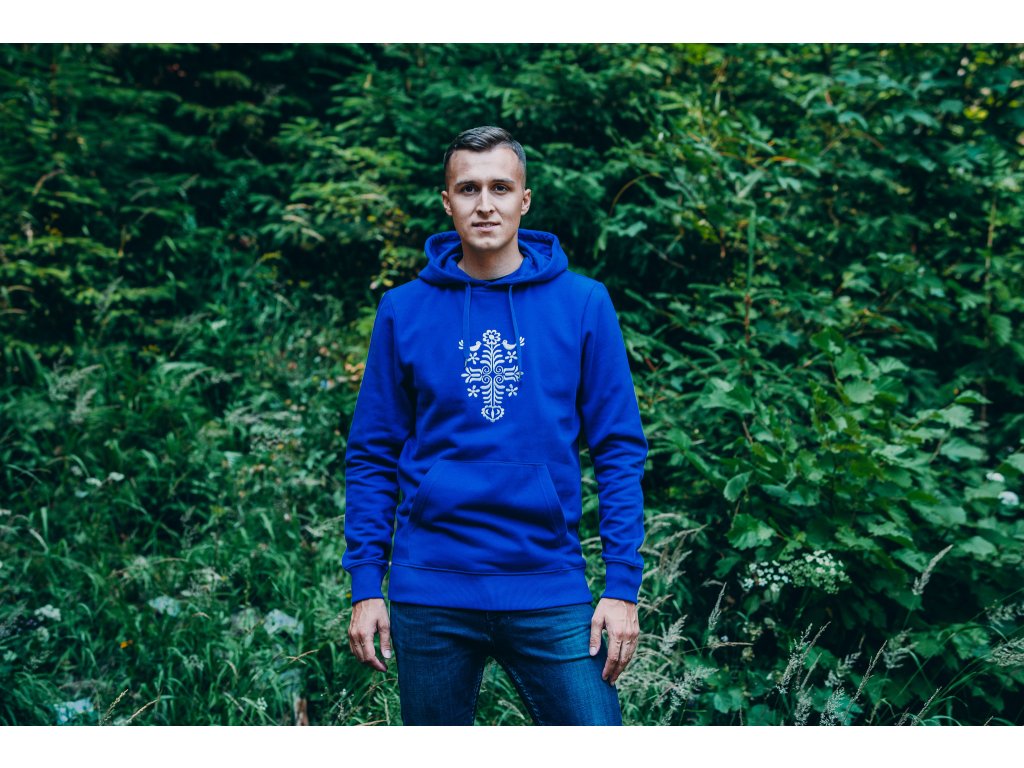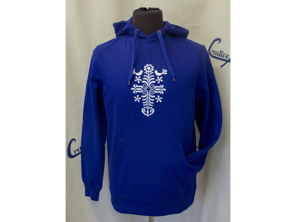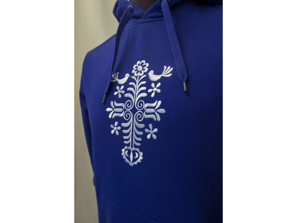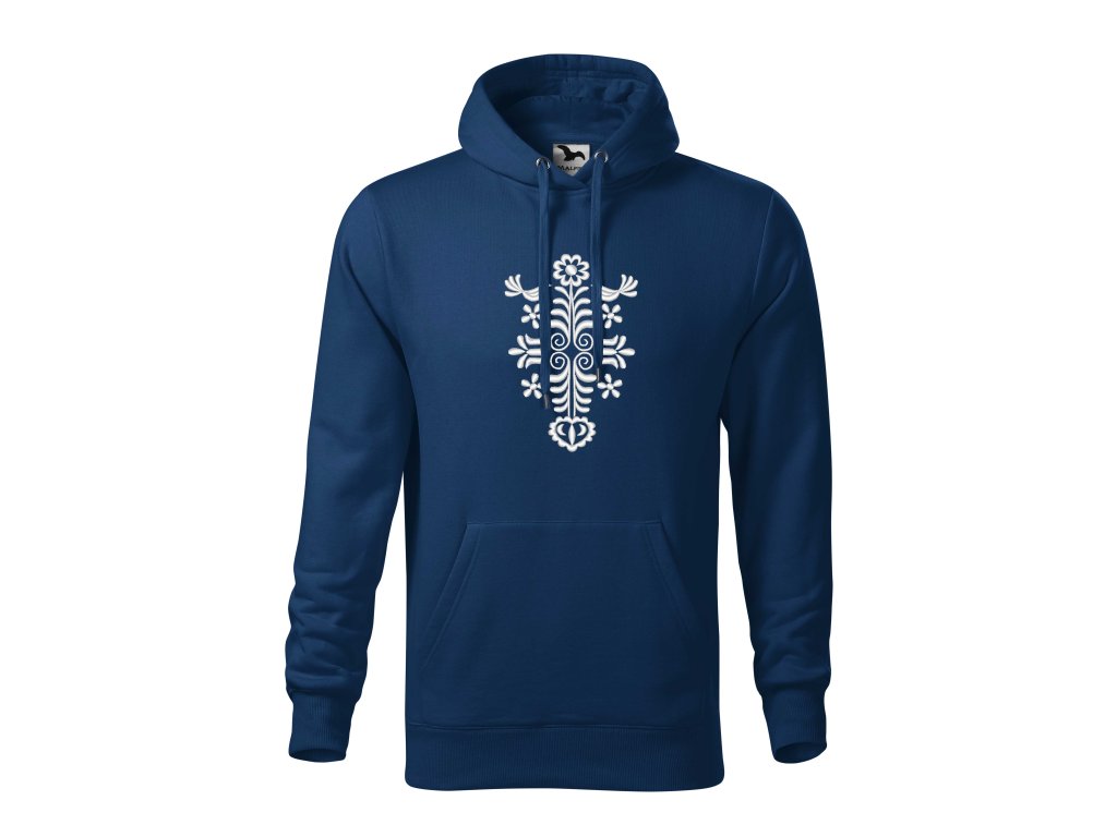 Folklórna mikina pánska s výšivkou vzor ADAM biely s kapucňou