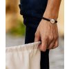 Náramok s folklórnym vzorom srdiečka IKA modrá a čiernou šnúrkou na stiahnutie.
