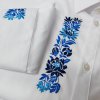 Pánska elegantná košeľa s ľudovým motívom v modrých odtieňoch vyšívaným okolo zapínania a na manžetách