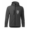 Jedinečná originálna softshellová PÁNSKA bunda s precíznou výšivkou vzoru Adam inšpirovanou slovenským folklórom a ornamentmi v bielej farbe výšivky
