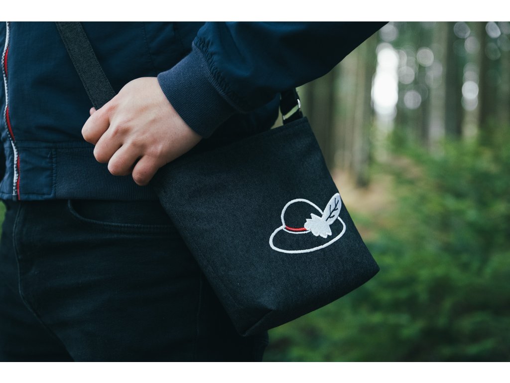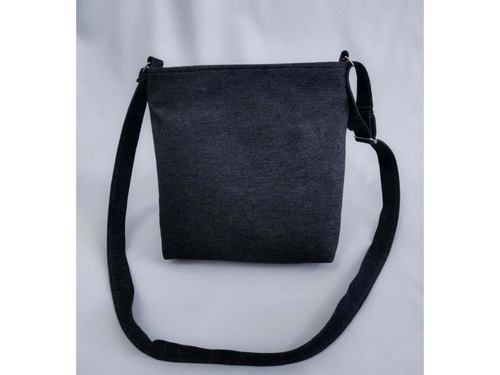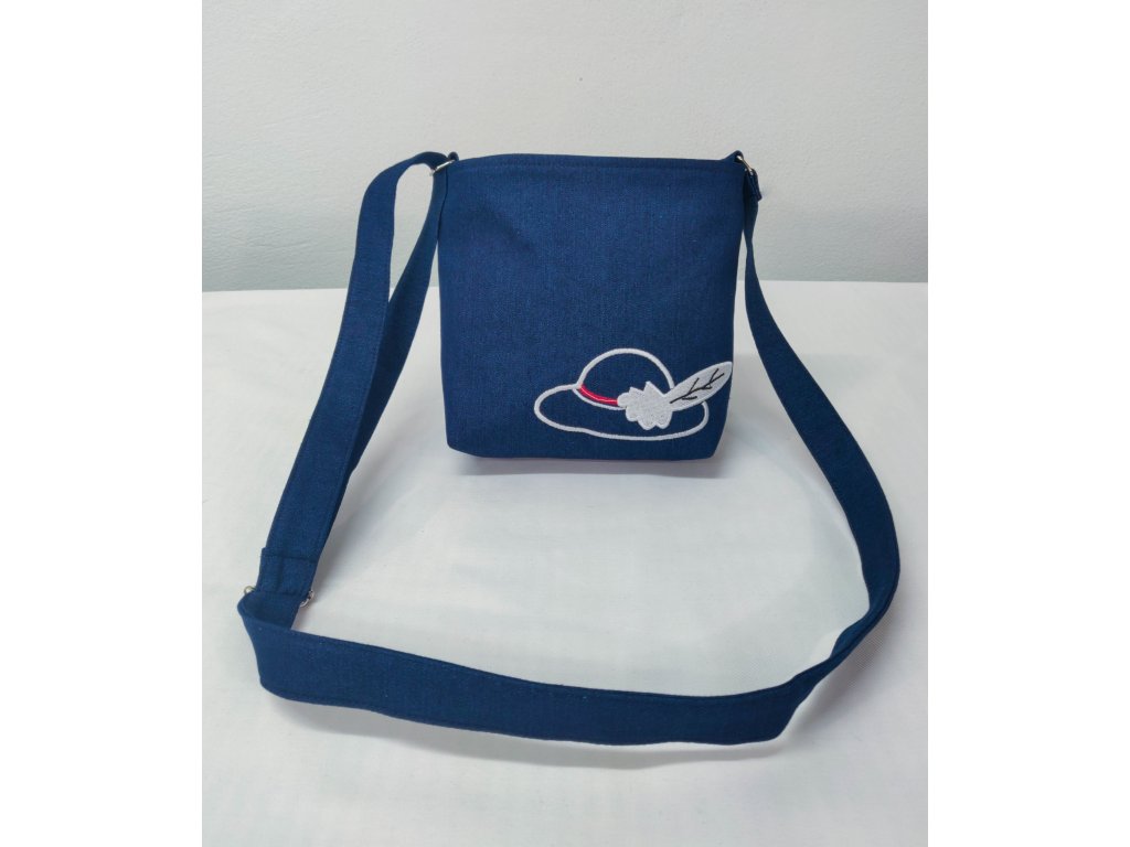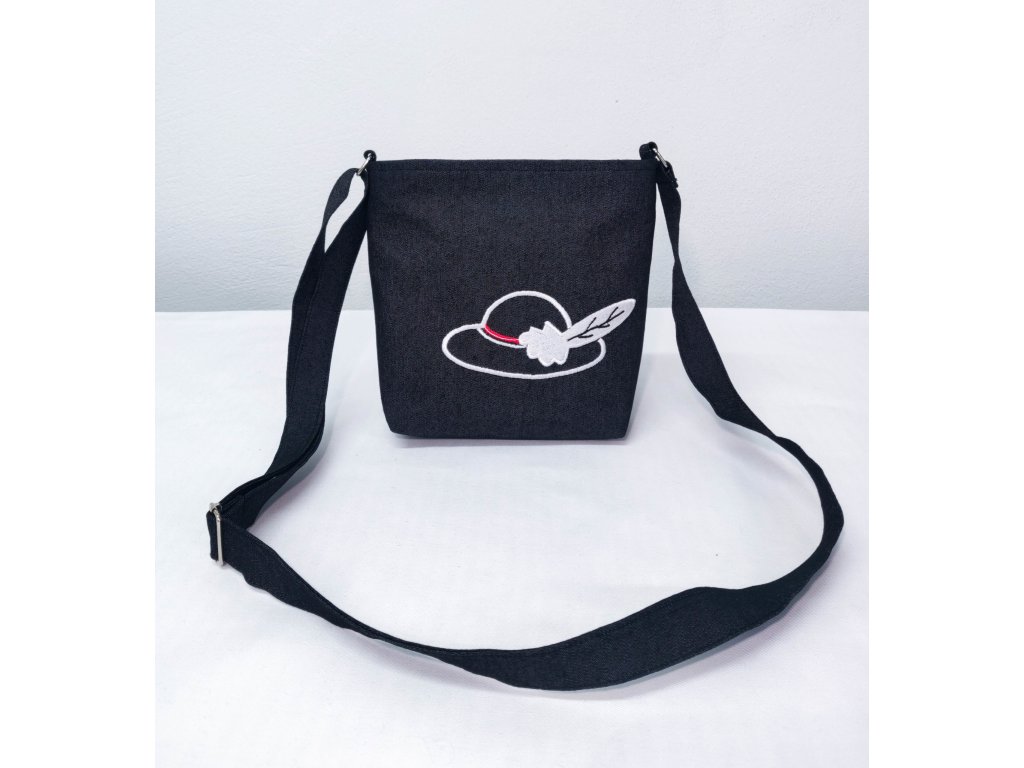 UNISEX kapsa cez rameno z čiernej alebo tmavomodrej rifloviny s výšivkou vzor Klobúk