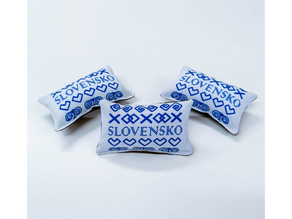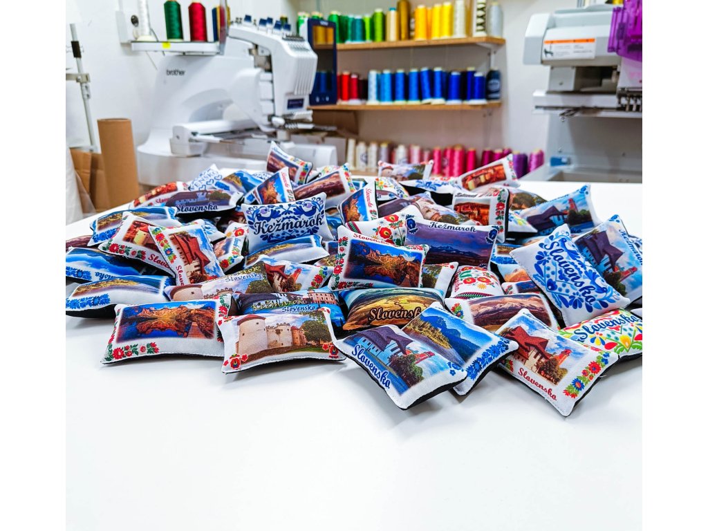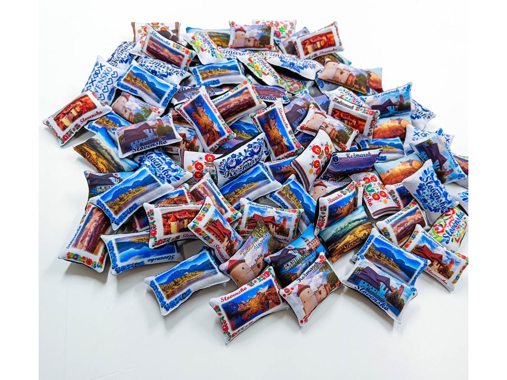 Magnetka je malý vankúšik v rozmere cca 10x6cm, vyplnená vankúšovou výplňou. Motív je potláčaný priamo na látku vankúšika.