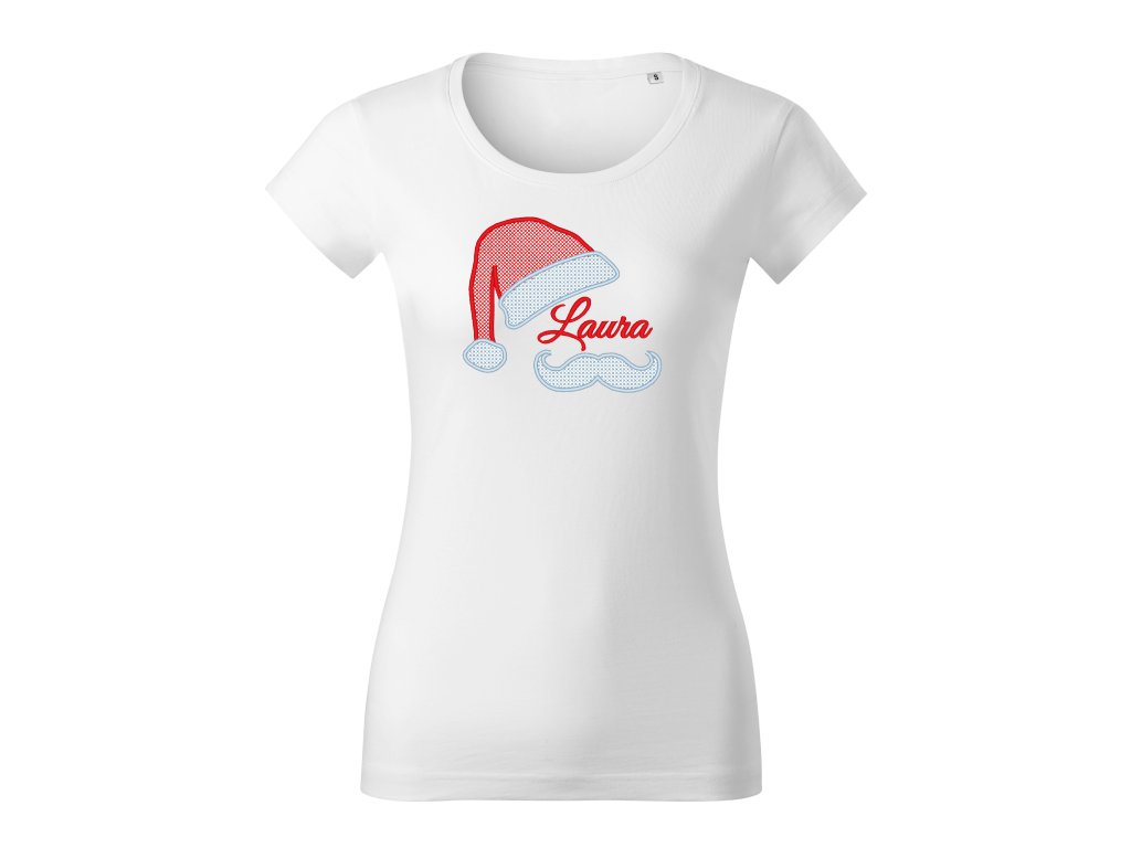 Sada dámskeho, pánskeho a detského trička v bielej farbe doplnené o originálnu vianočnú výšivku mikulášskej čiapky a brady. Súčasťou výšivky je aj vyšitý nápis (meno, prezývka,...), ktorý vám vyšijeme v cene tričiek.
