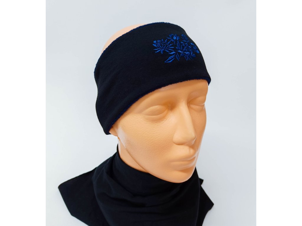 Vyšívaná fleecom zateplená úpletová ČELENKA vzor Kristián tmavomodrá výber farieb