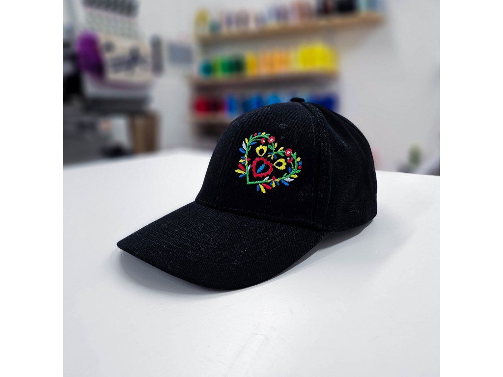 Elegantná čierna šiltovka doplnená o originálnu výšivku srdiečka na prednej strane šiltovky.