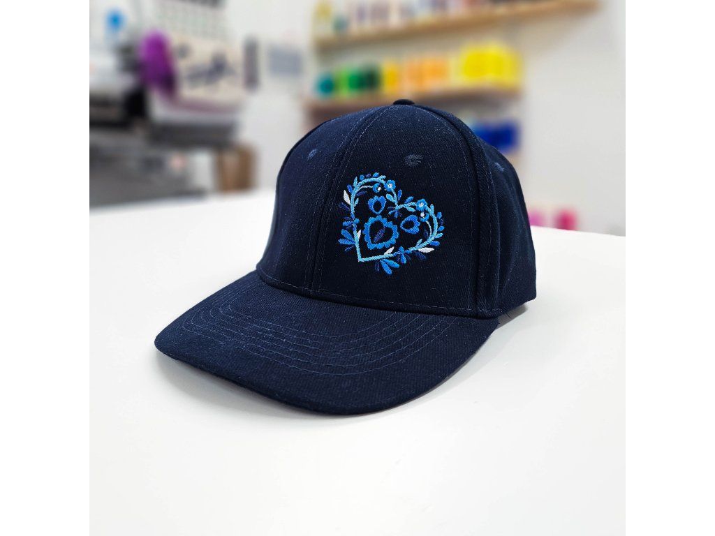 Elegantná tmavomodrá šiltovka doplnená o originálnu výšivku srdiečka na prednej strane šiltovky.