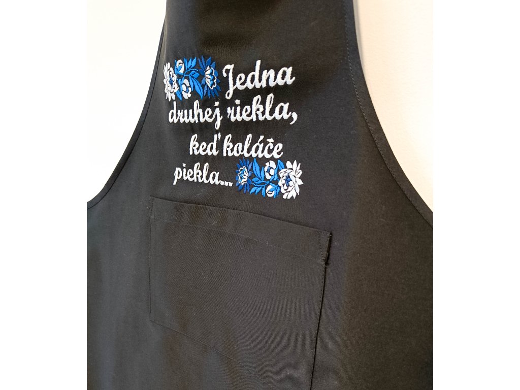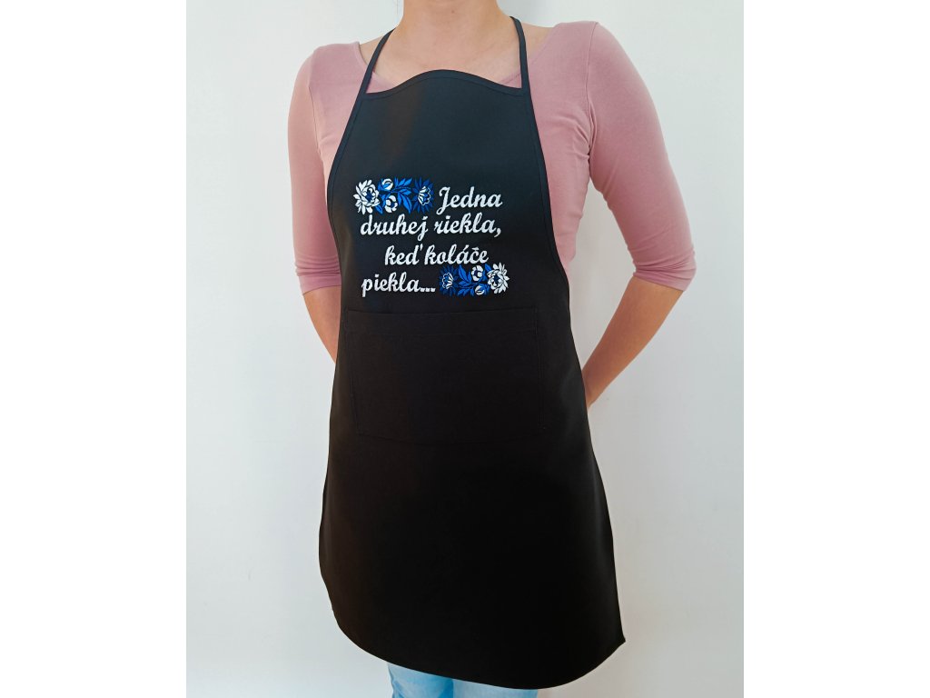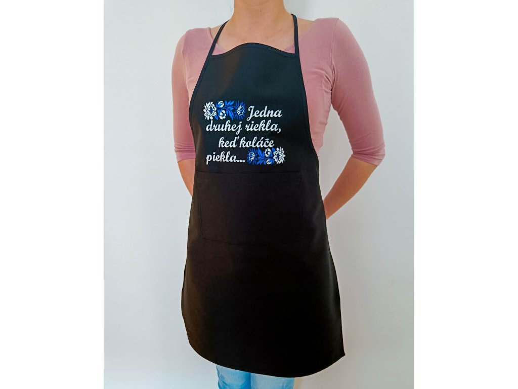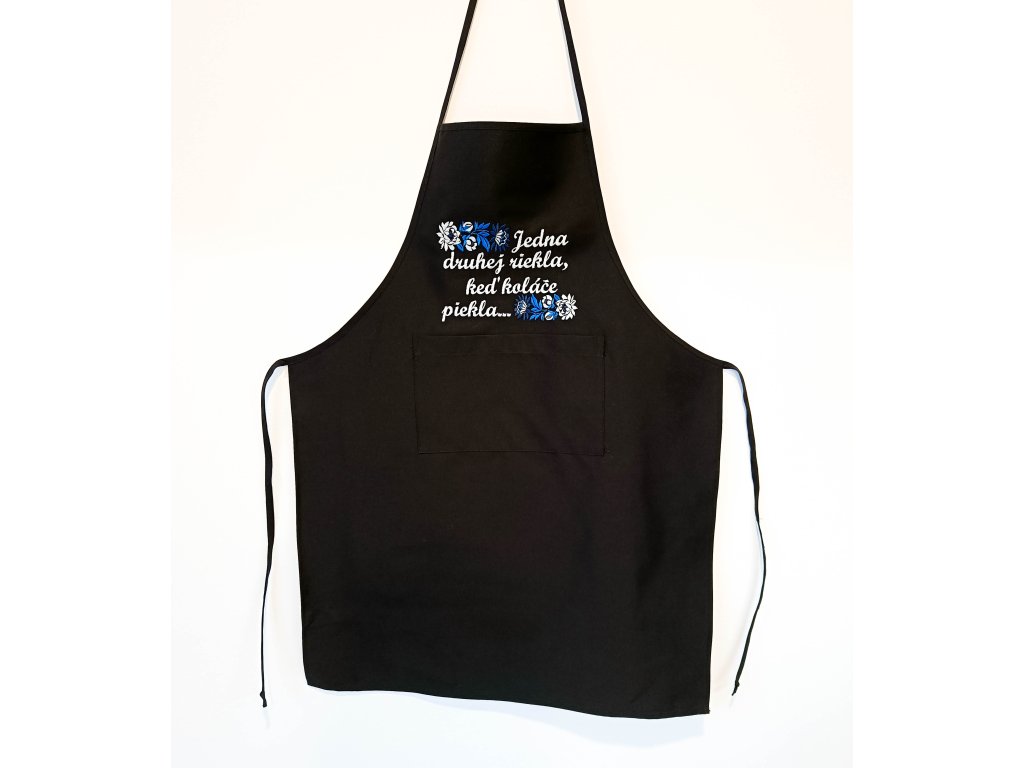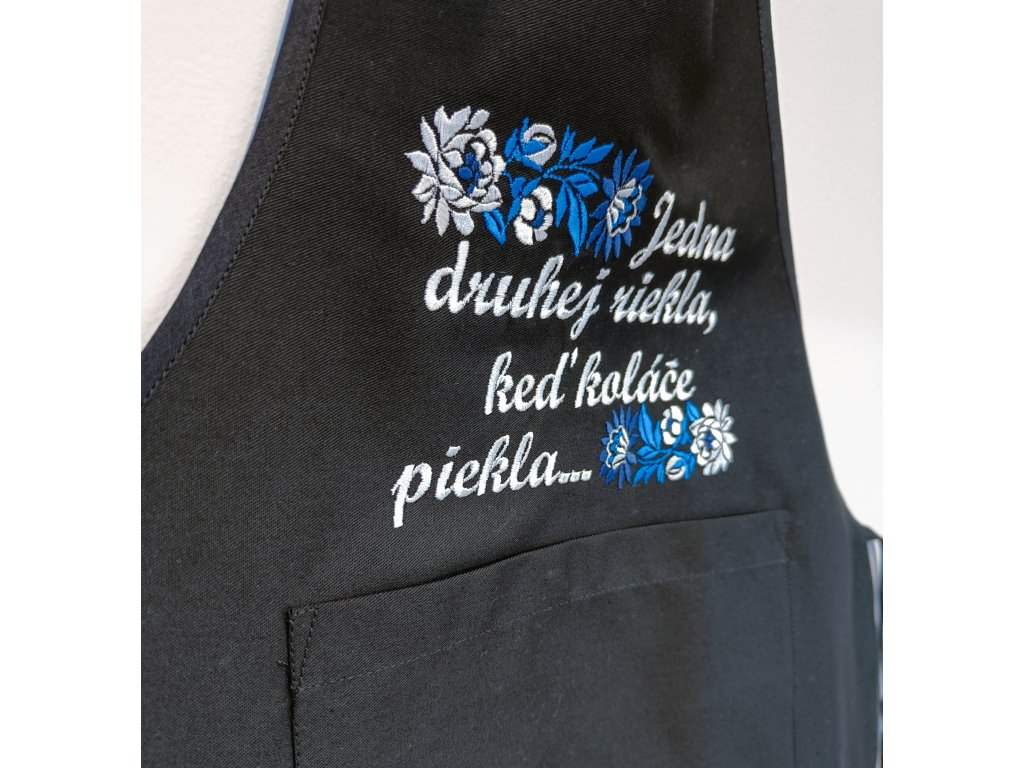 Vyšívaná zástera čierna ,,Jedna druhej riekla..." modrý