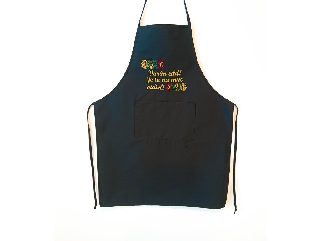 Vyšívaná zástera čierna ,,Varím rád" ZLATÁ EDÍCIA